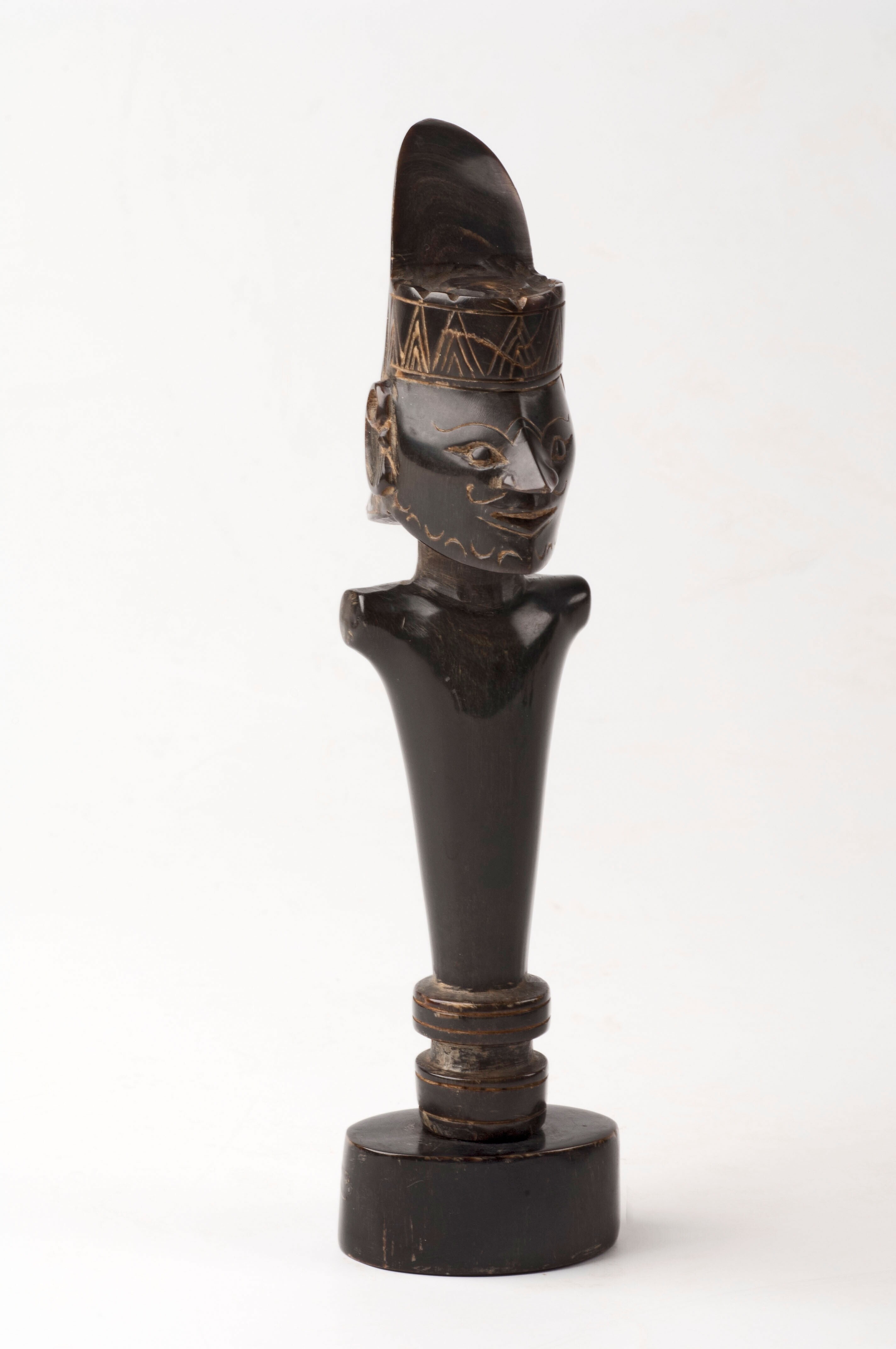 Zwart hoornen beeldje een in staatdiegewaad geklede ...
