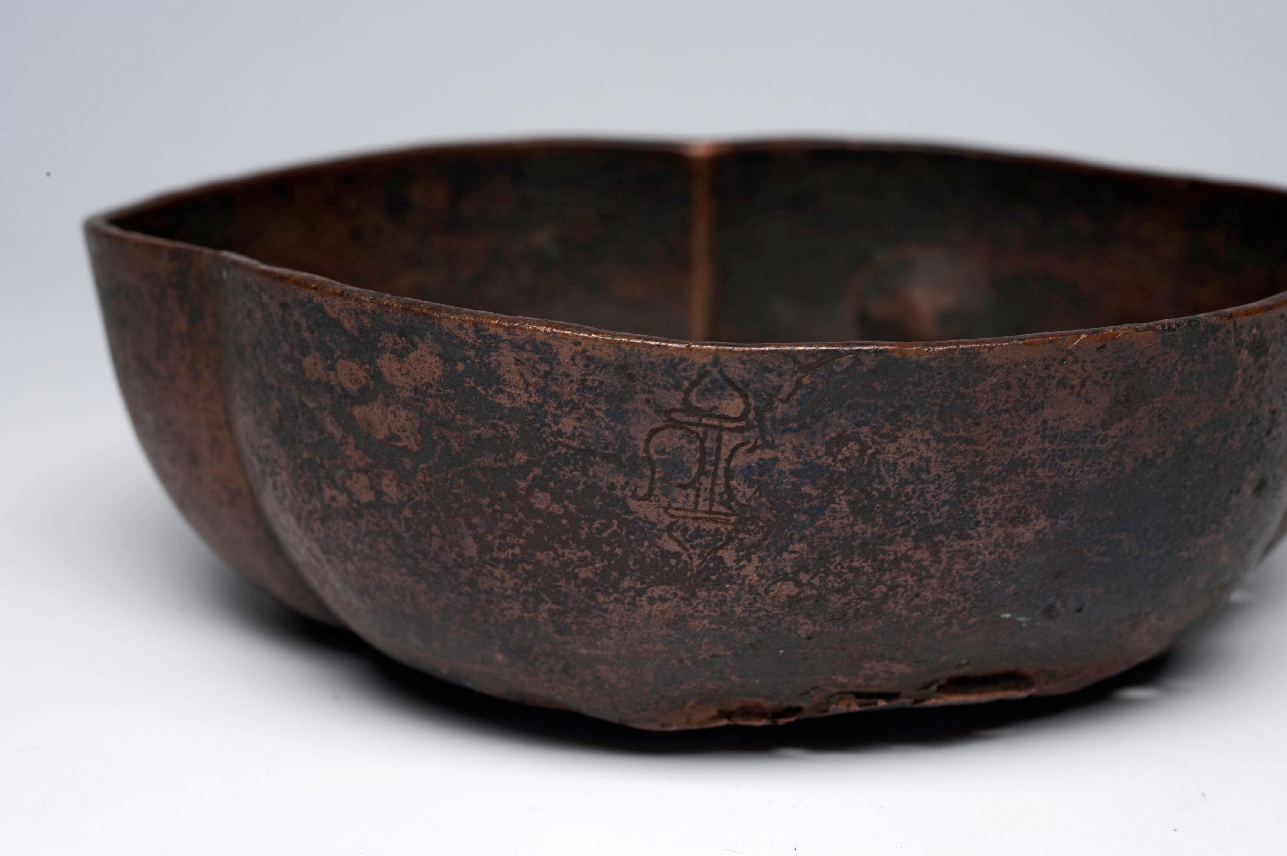 Koperen offerlepel met een ingegraveerd lotusmotief
