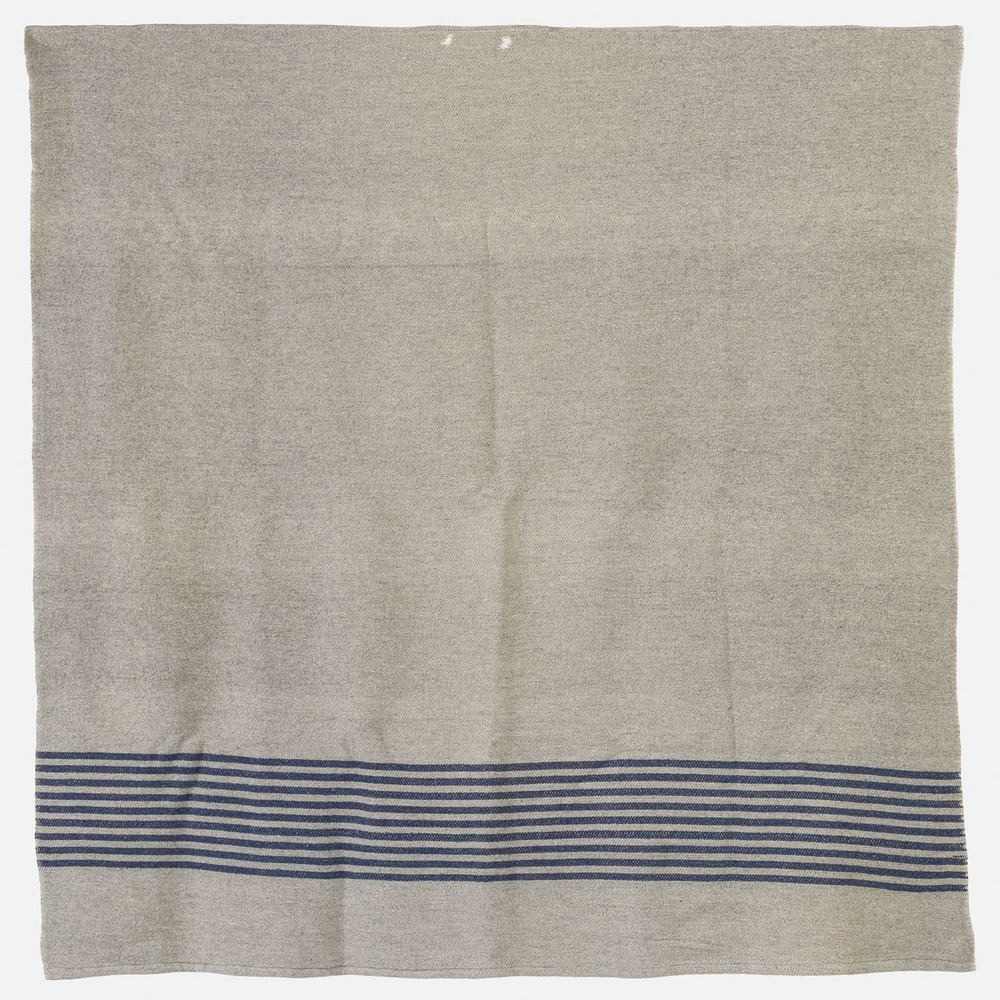 Donkerblauwe deken met riemen en stiksels, "Jeroen v...