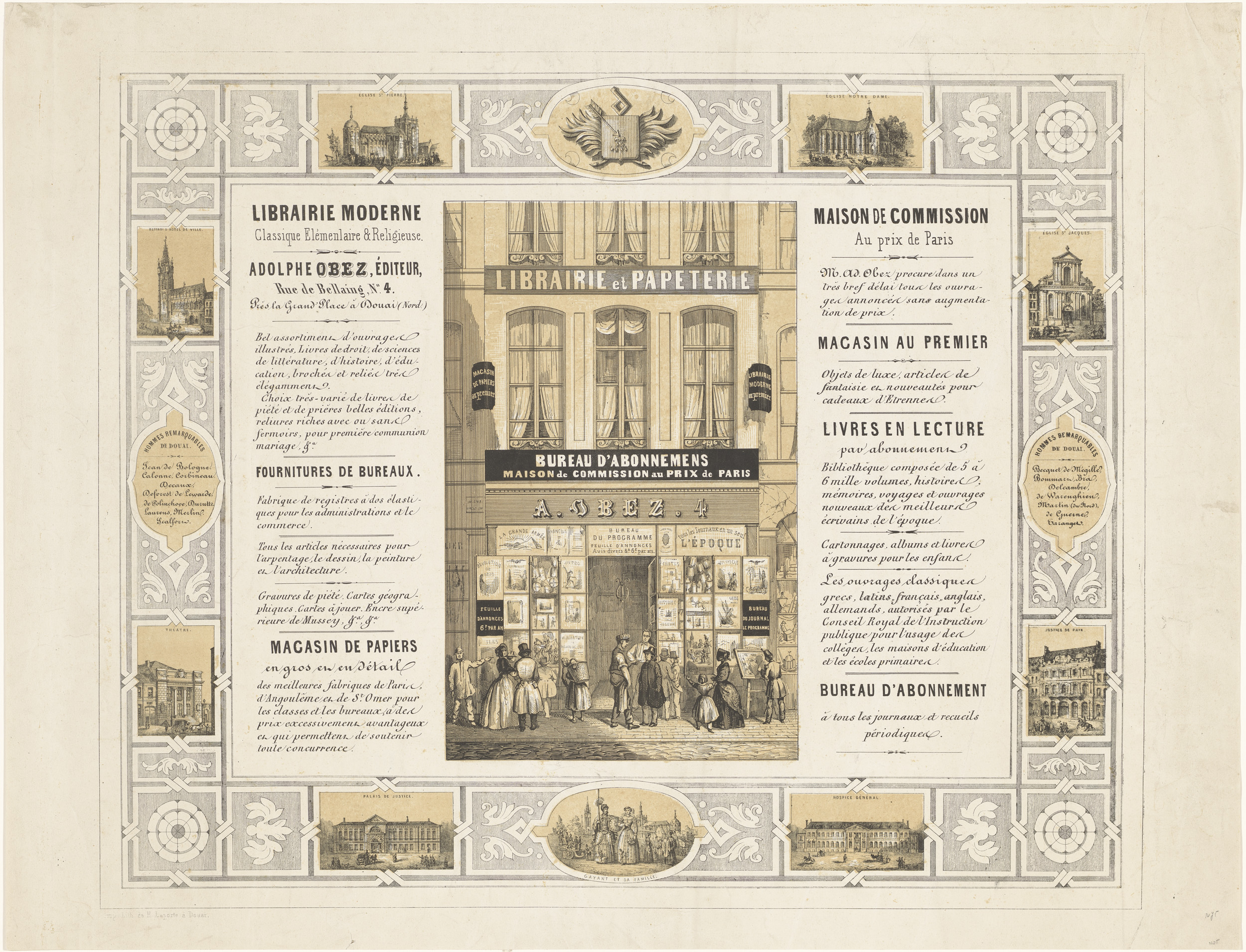 Affiche van boekhandel Adolphe Obez te Douai