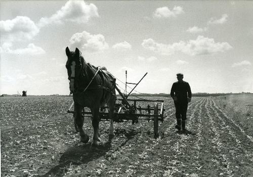 Foto van een schoffelmachine in de bieten door J.D. ...