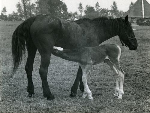 Foto in zwart-wit van een paardenhoofd door J.D. de ...