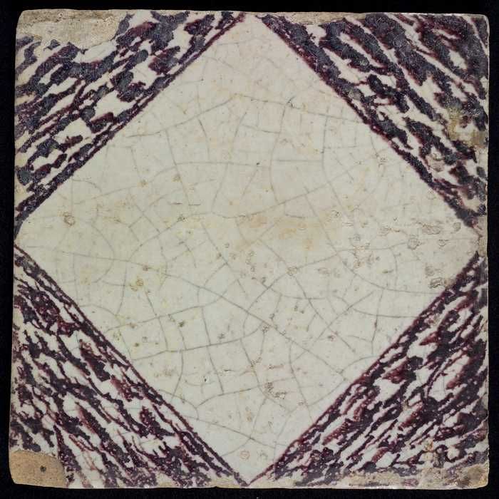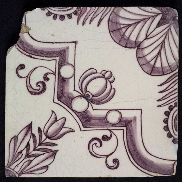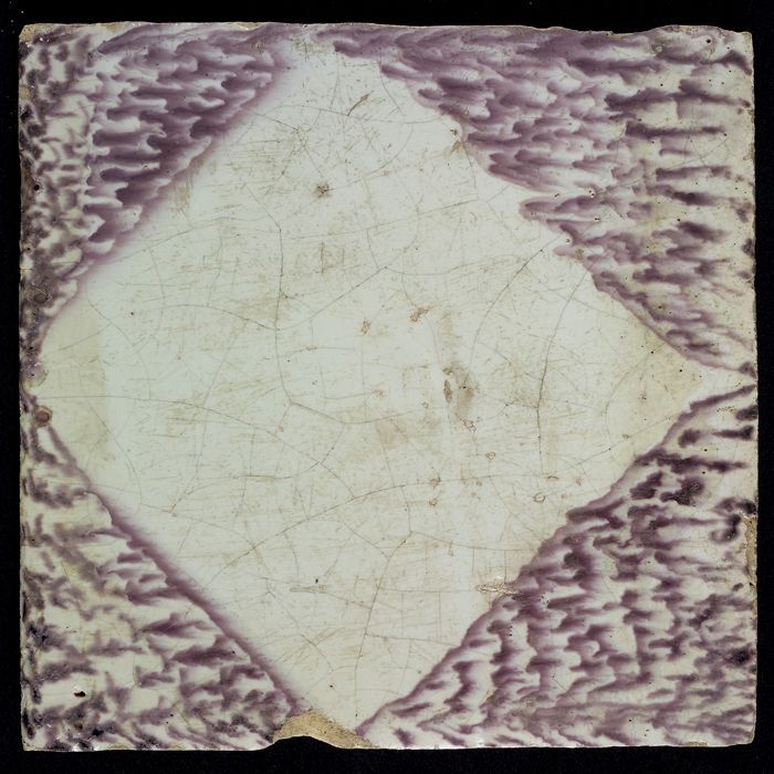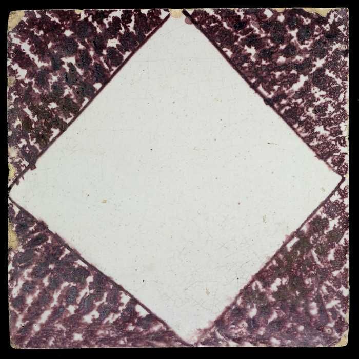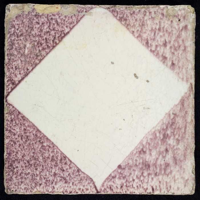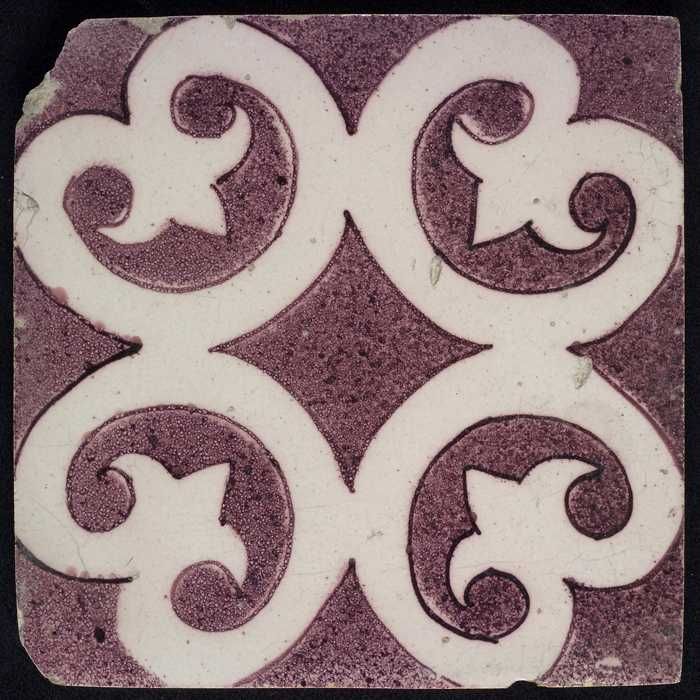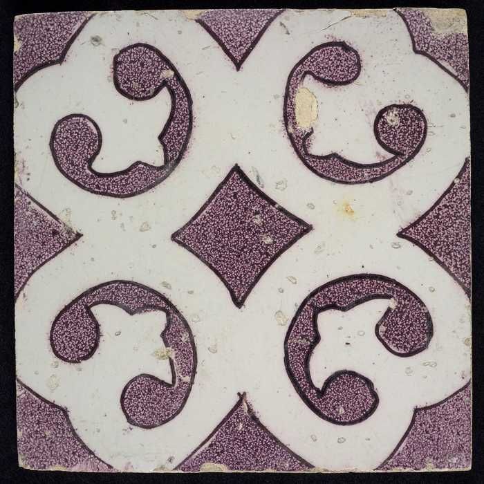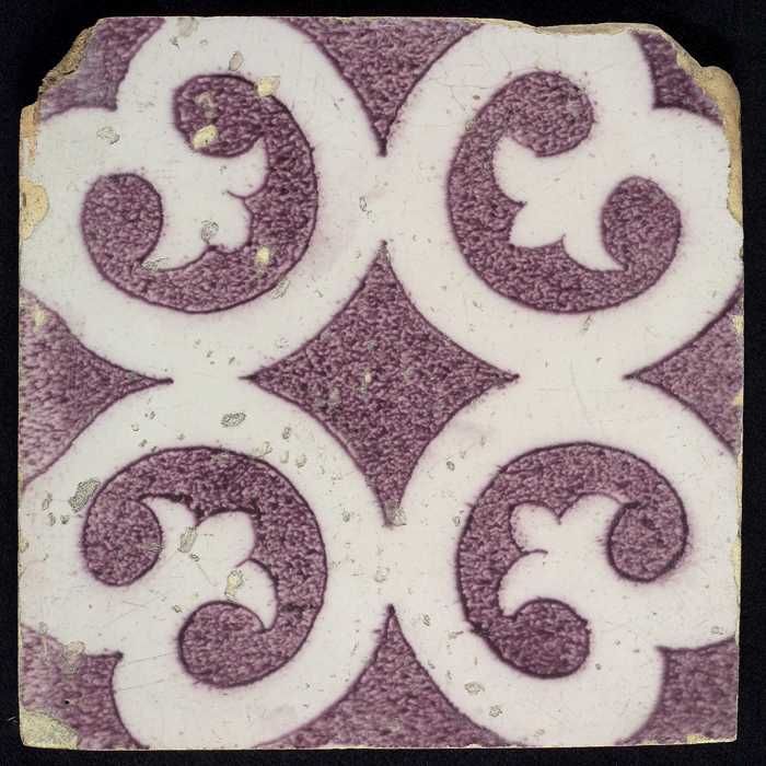 Ornamenttegel, paars op wit, met blanco kwadraat en ...