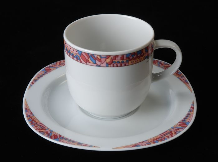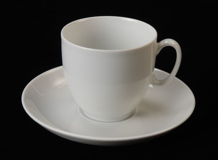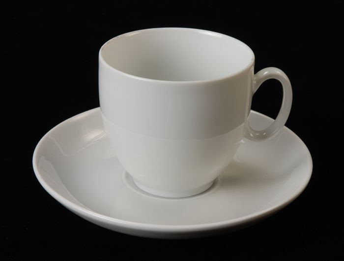 Kop (A) en schotel (B) van Van Nelle, wit porselein ...