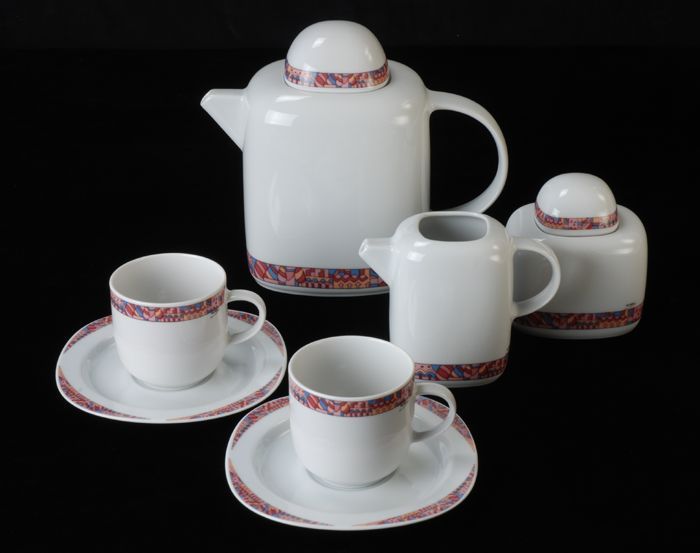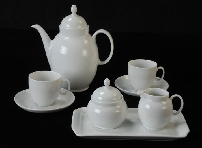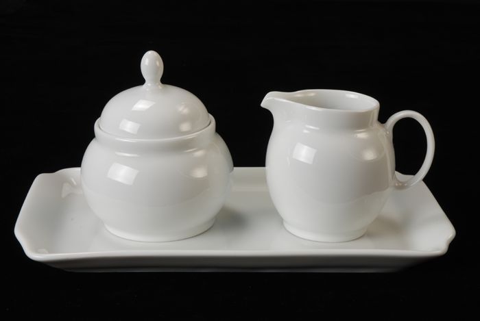 Witte melkkan of roomkannetje (1), suikerpot (2) op ...