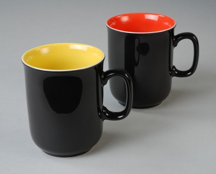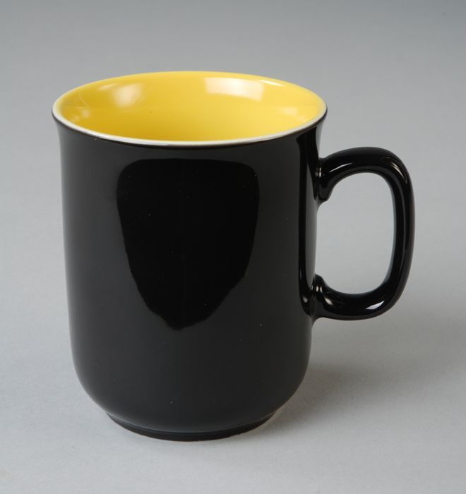 Mok van Van Nelle, zwarte buitenkant en gele binnenk...