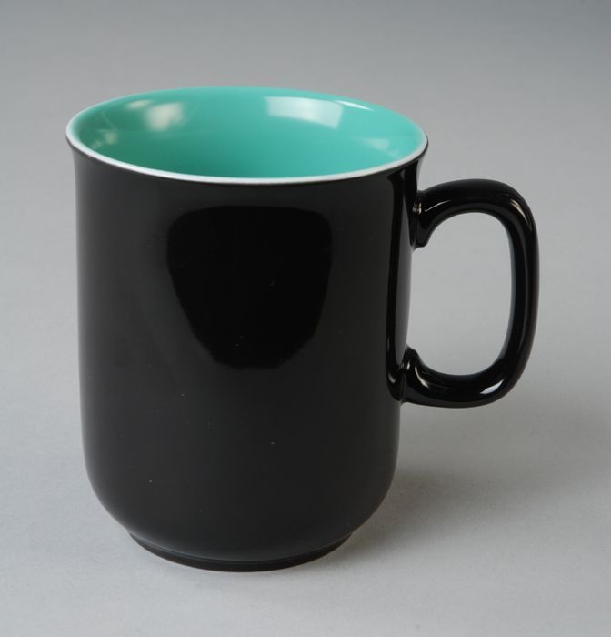 Mok van Van Nelle, zwarte buitenkant en mintgroene b...