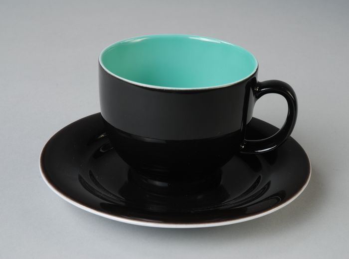 Kop (A) en schotel (B) van Van Nelle, zwarte buitenk...