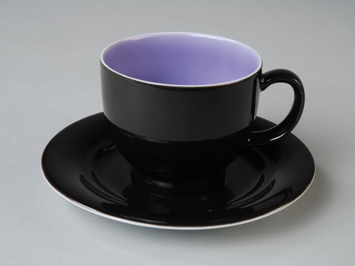 Mok van Van Nelle, zwarte buitenkant en lila binnenk...