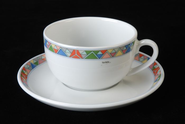 Theekop (A) en schotel (B) van Van Nelle, wit porsel...