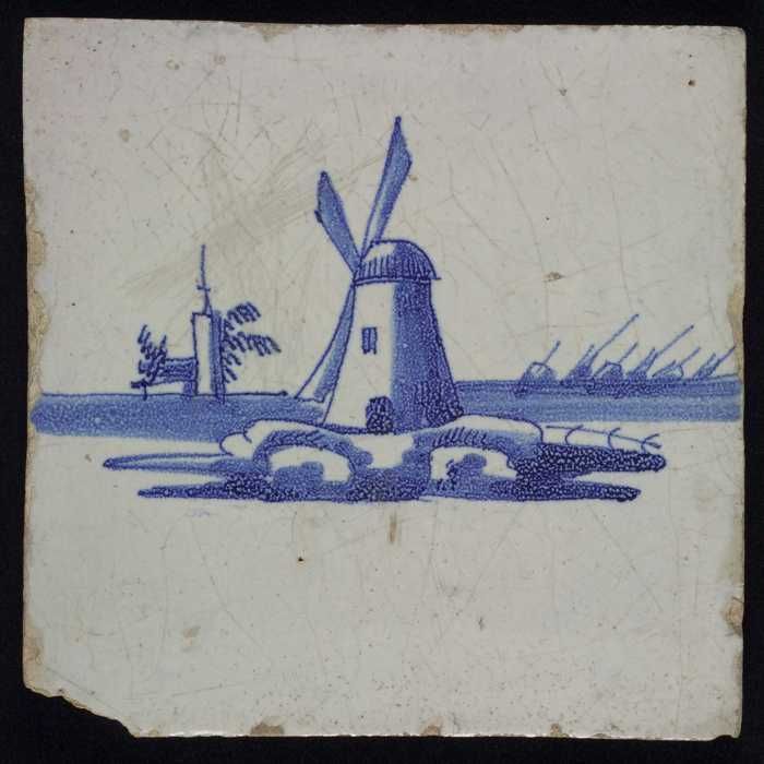 Tafereeltegel, blauw, molen, geen hoekmotief
