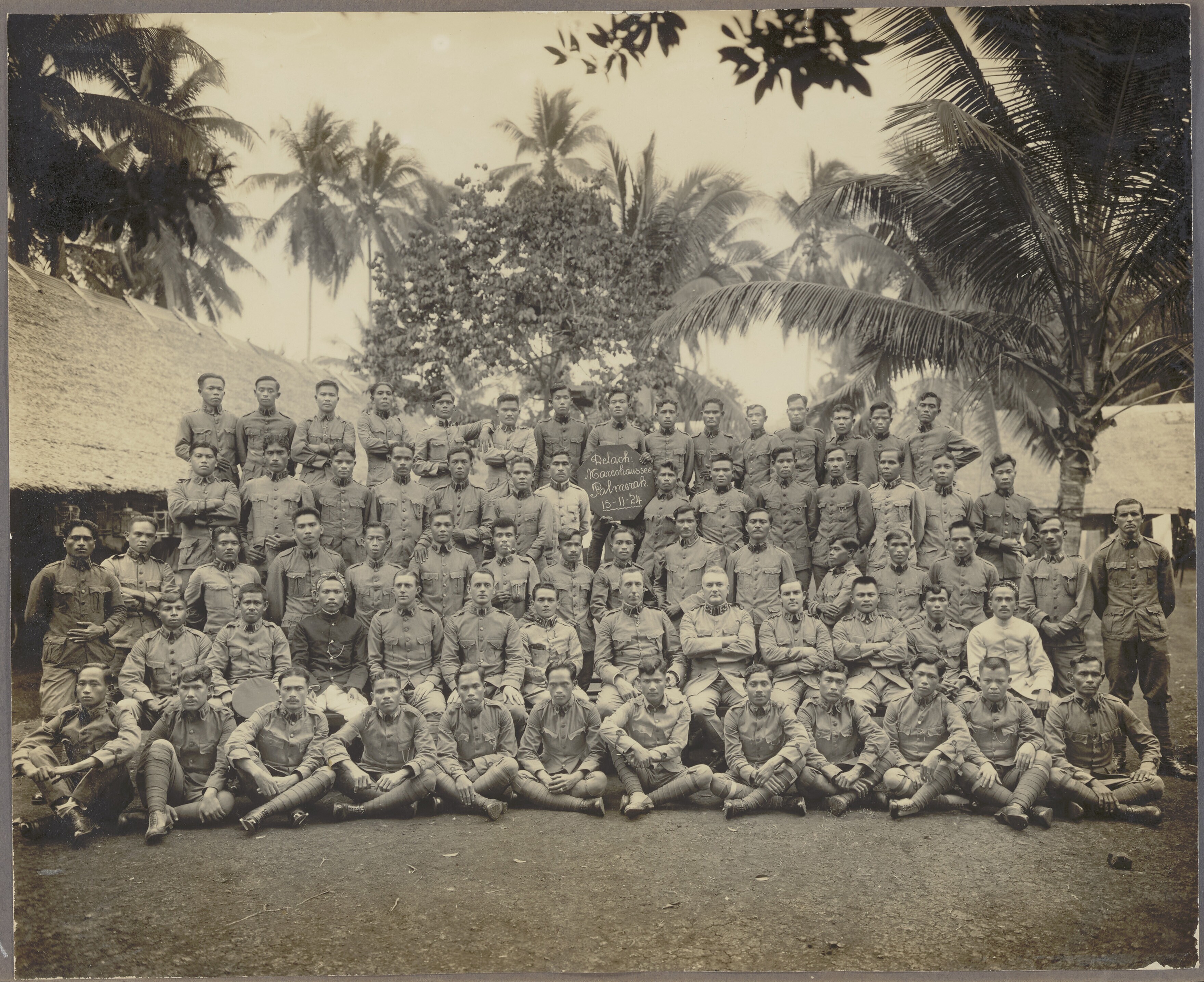Groepsportret van het korps Marechaussee te Palmerah