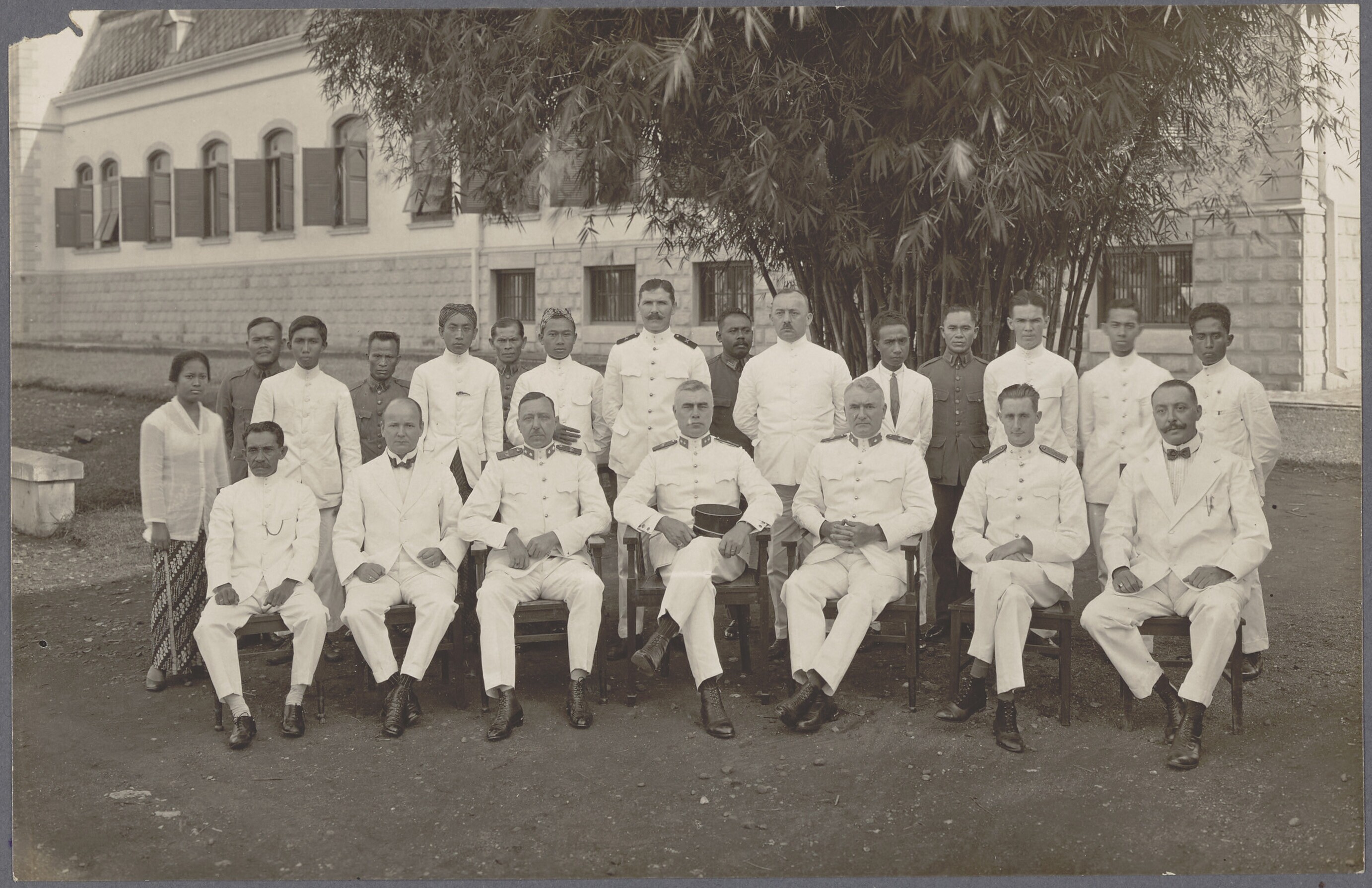 Groepsportret van mannen, officieren en één vrouw