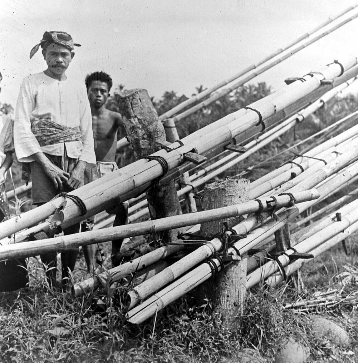Portret van een oude Javaanse man met zijn zoon