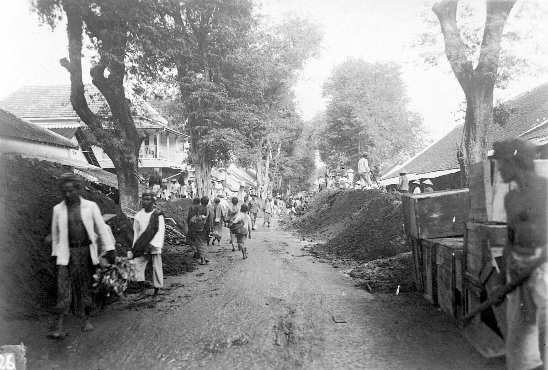 Opruimingswerk te Blitar, Java, na de eruptie van de...