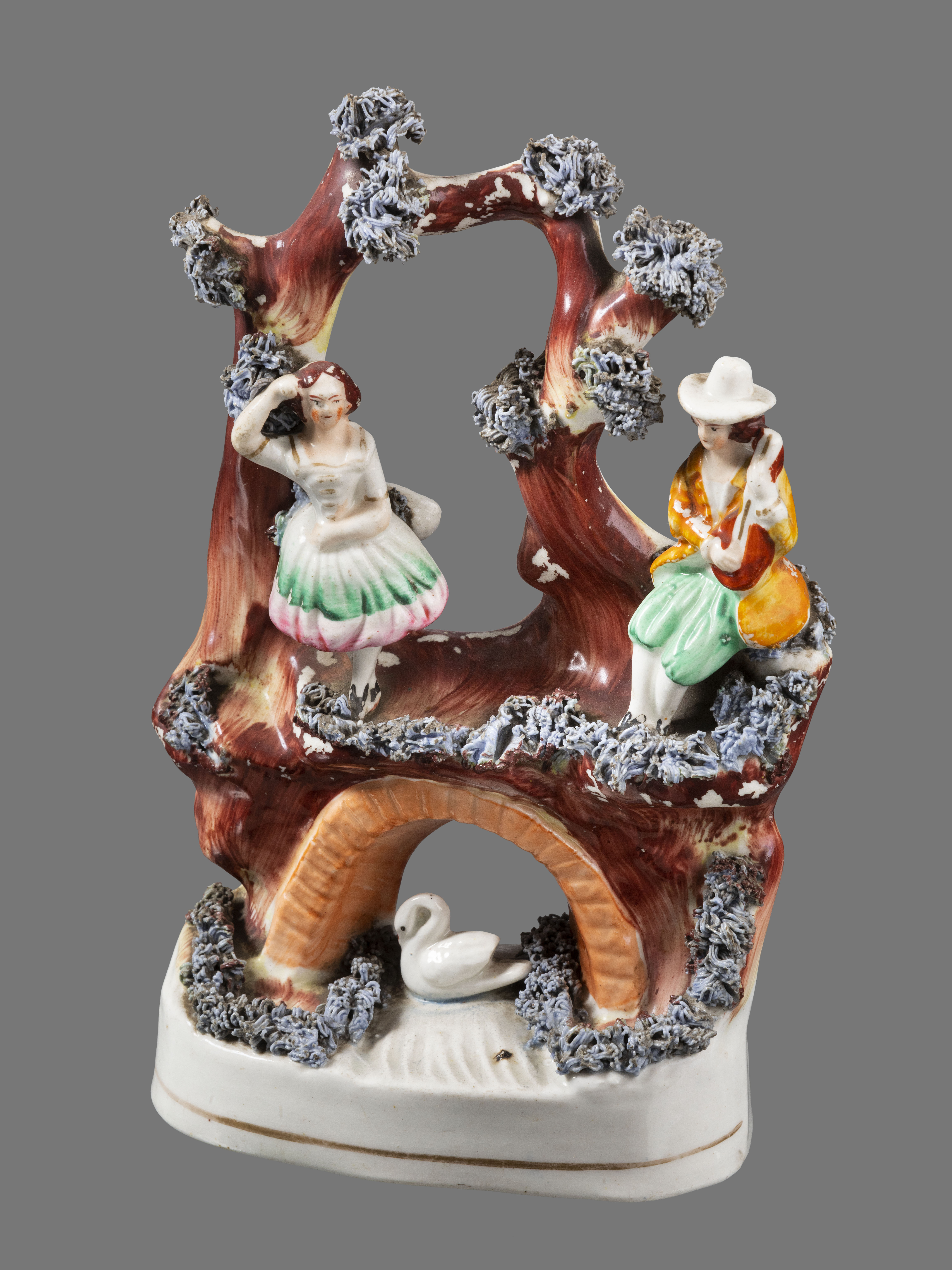 Beeld van zwaan met man en vrouw