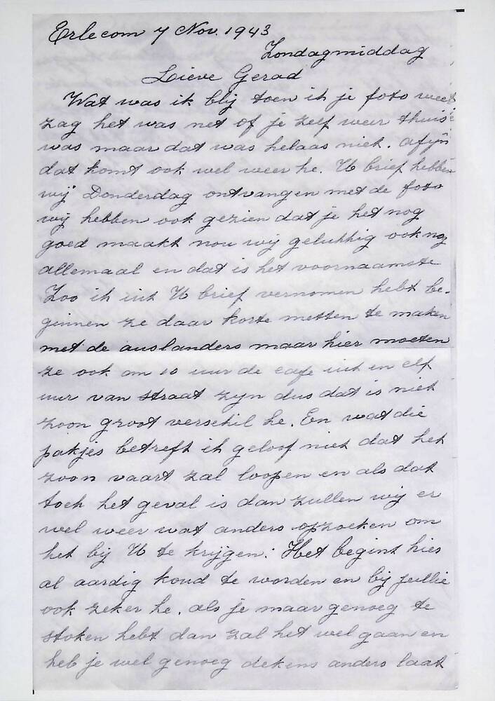 Brief in enveloppe. 7 november 1943. Aan den heer G....