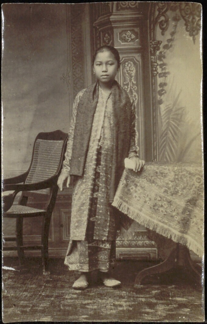 Een Javaanse soldaat met zijn vrouw in traditionele ...