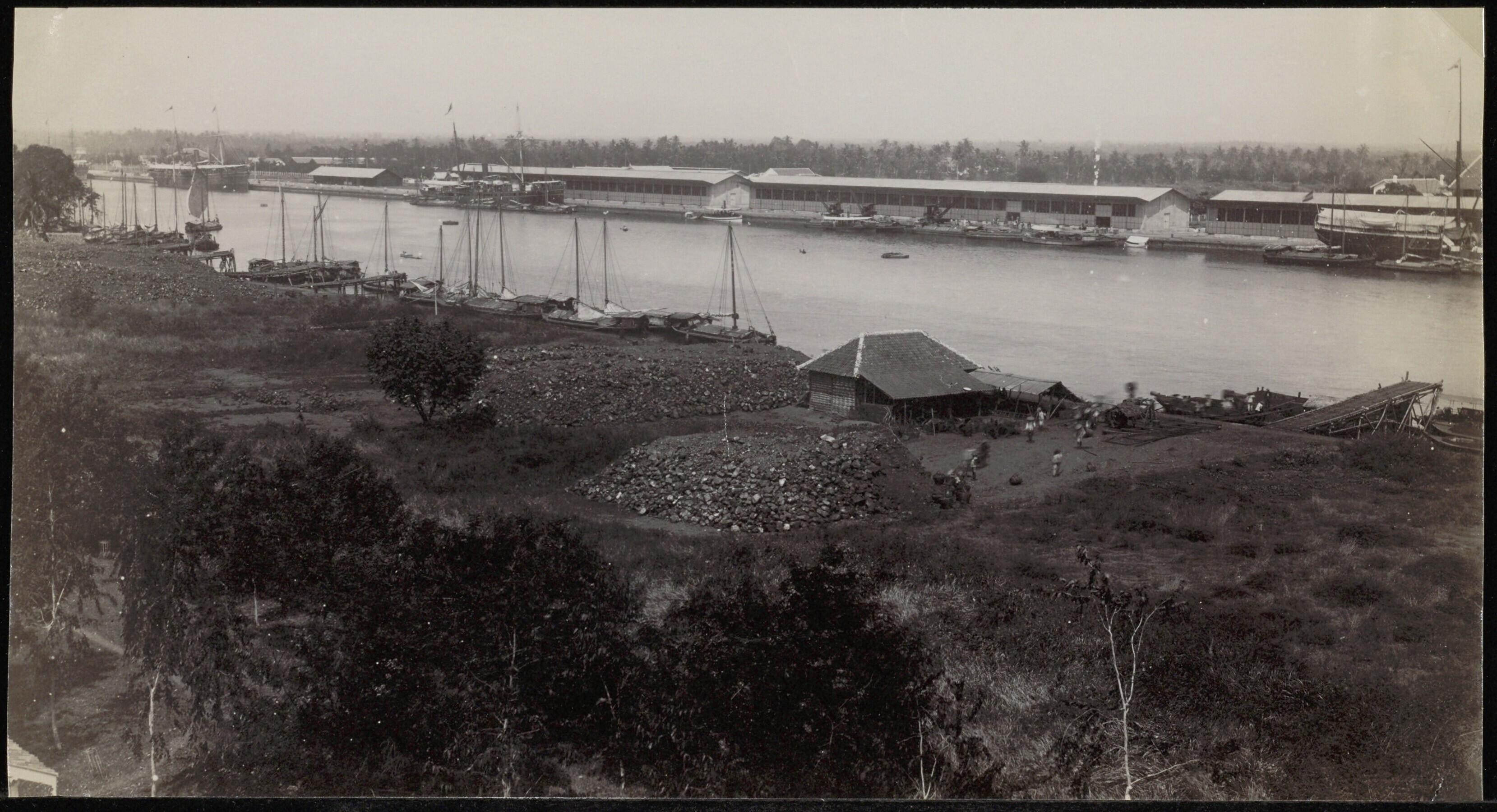 Gezicht op gebouwen behorende bij de theeonderneming...