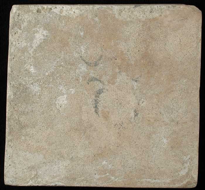 Beroepentegel, paars gesprenkelde tegel, in geschulp...