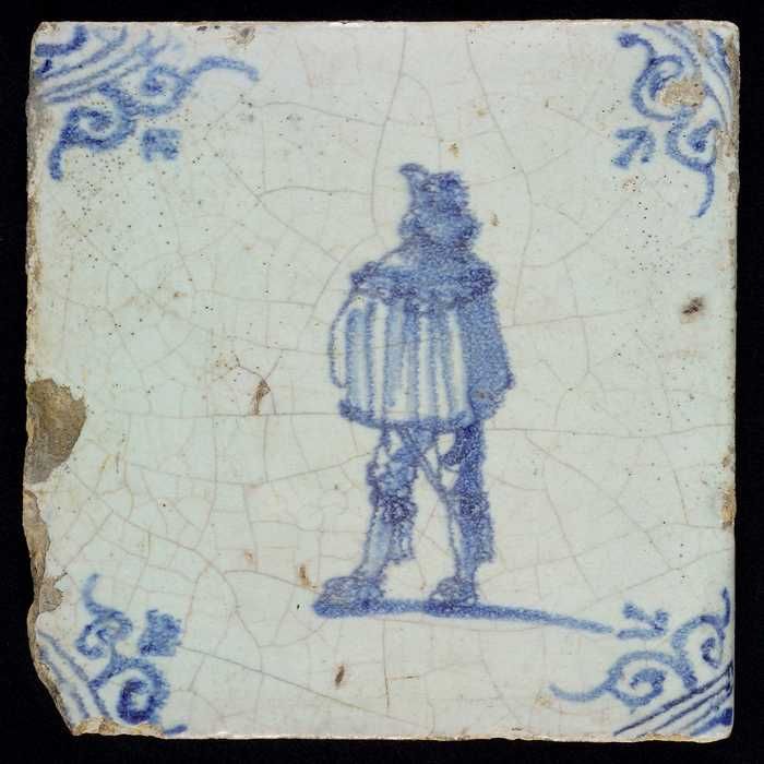Figuurtegel, blauw, soldaat met ransel en speer, hoe...
