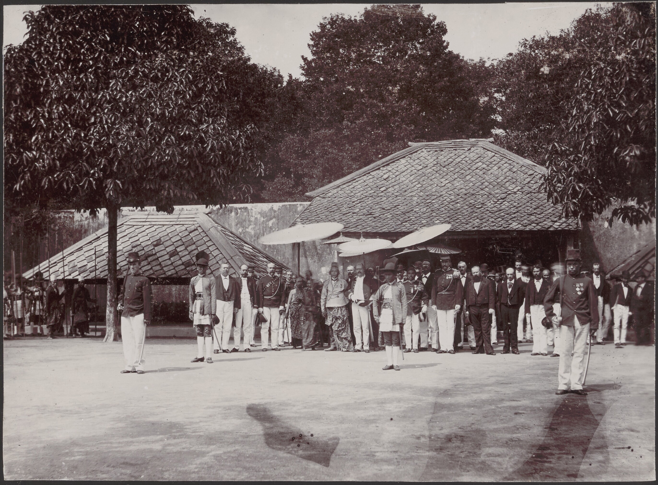 Groepsportret van gezelschap in de Kraton van Yogyak...