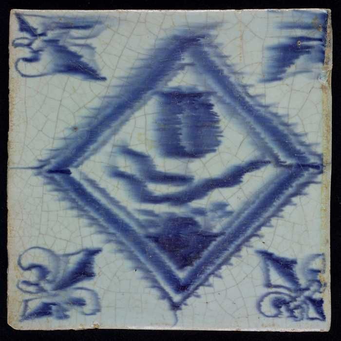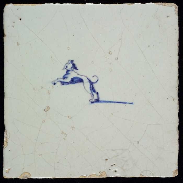 Dierentegel, grazend dier (?), baluster met lelies, ...