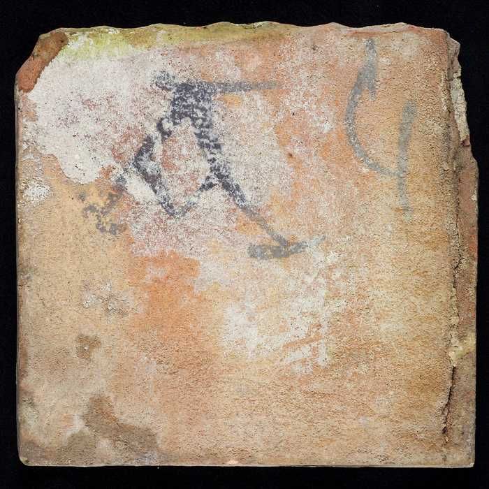 Figuurtegel, drijver of soldaat met hoorn en speer, ...
