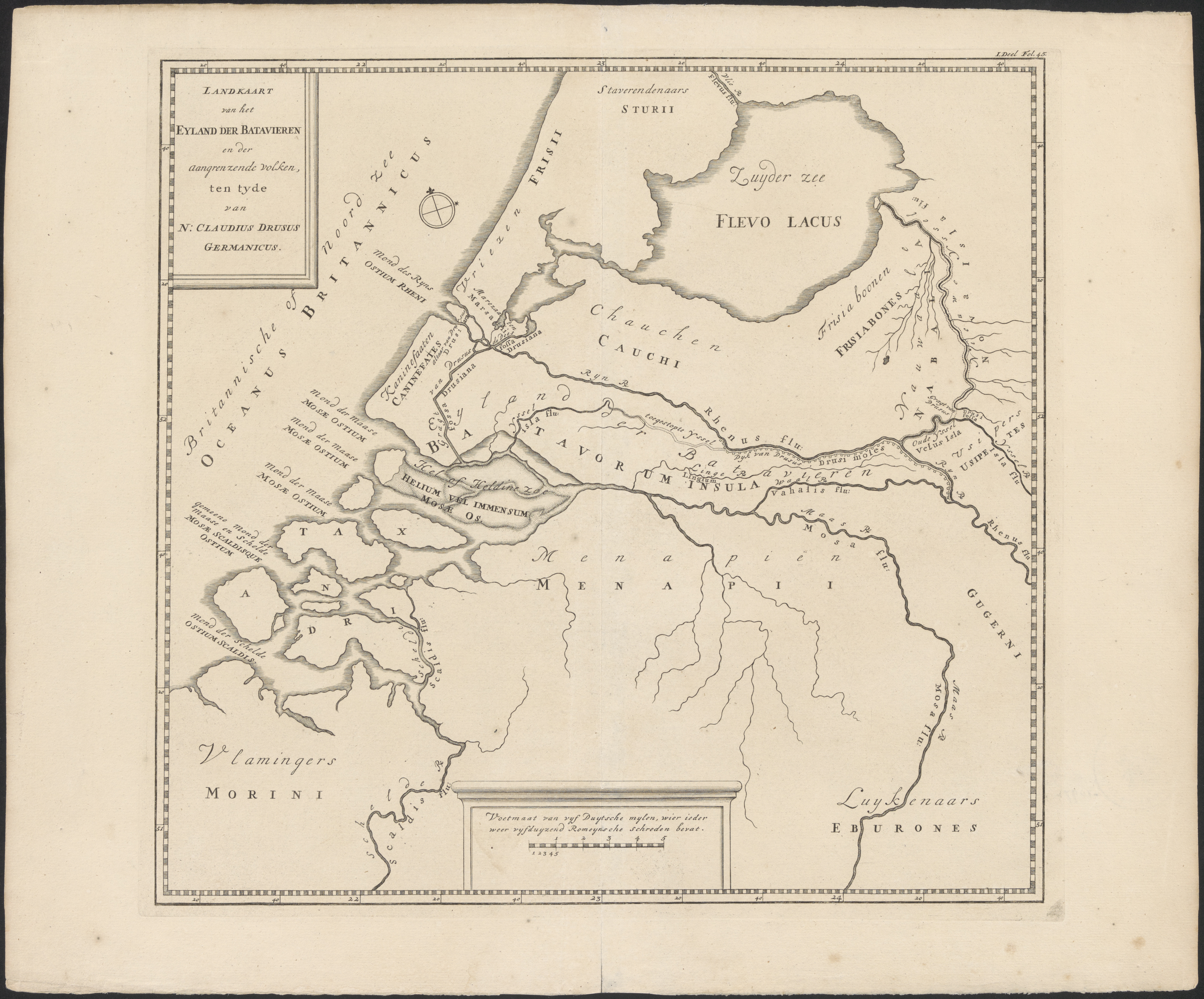 Landkaart van het Eyland der Batavieren en der aangr...