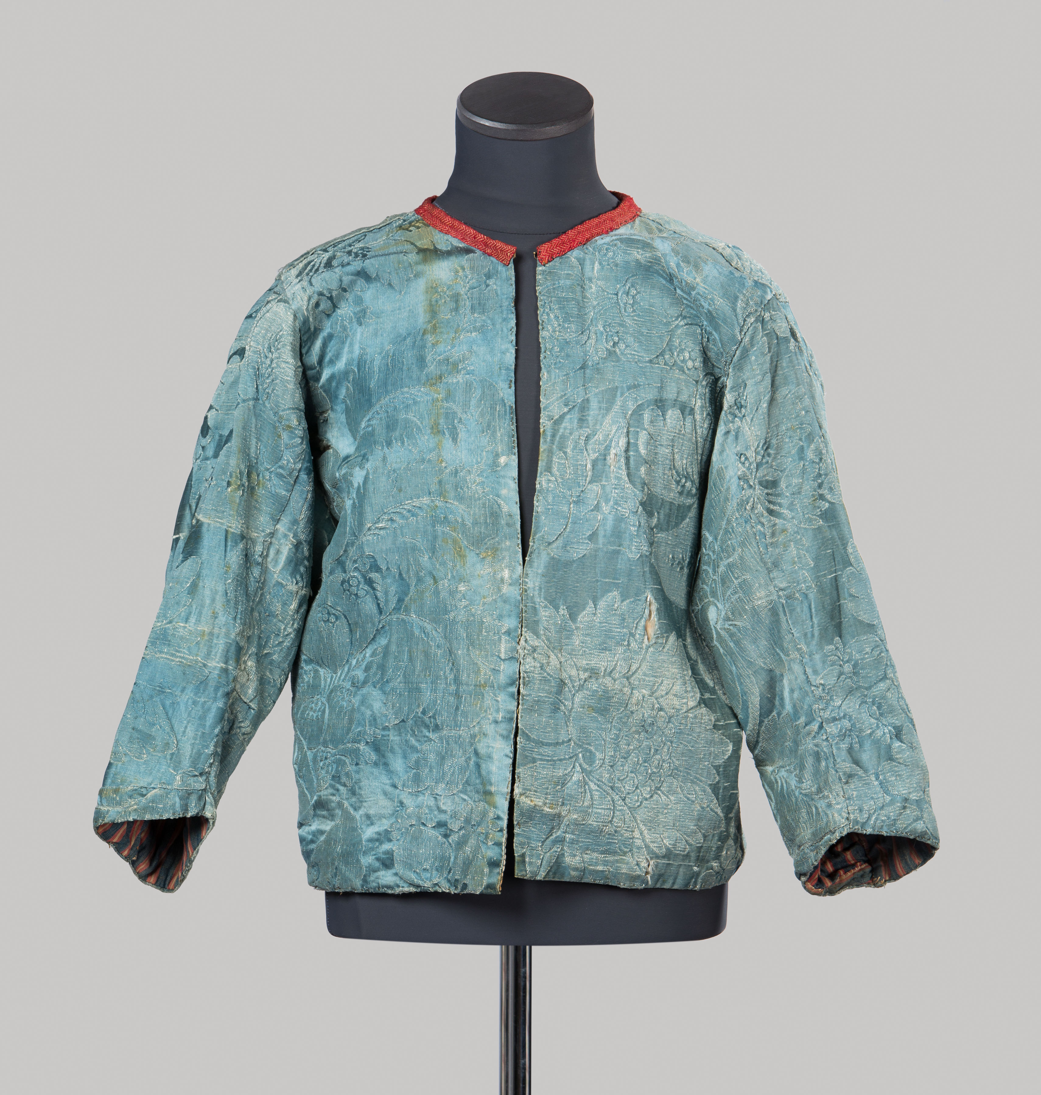 Onderlijfje van lichtblauw zijden jacquardweefsel