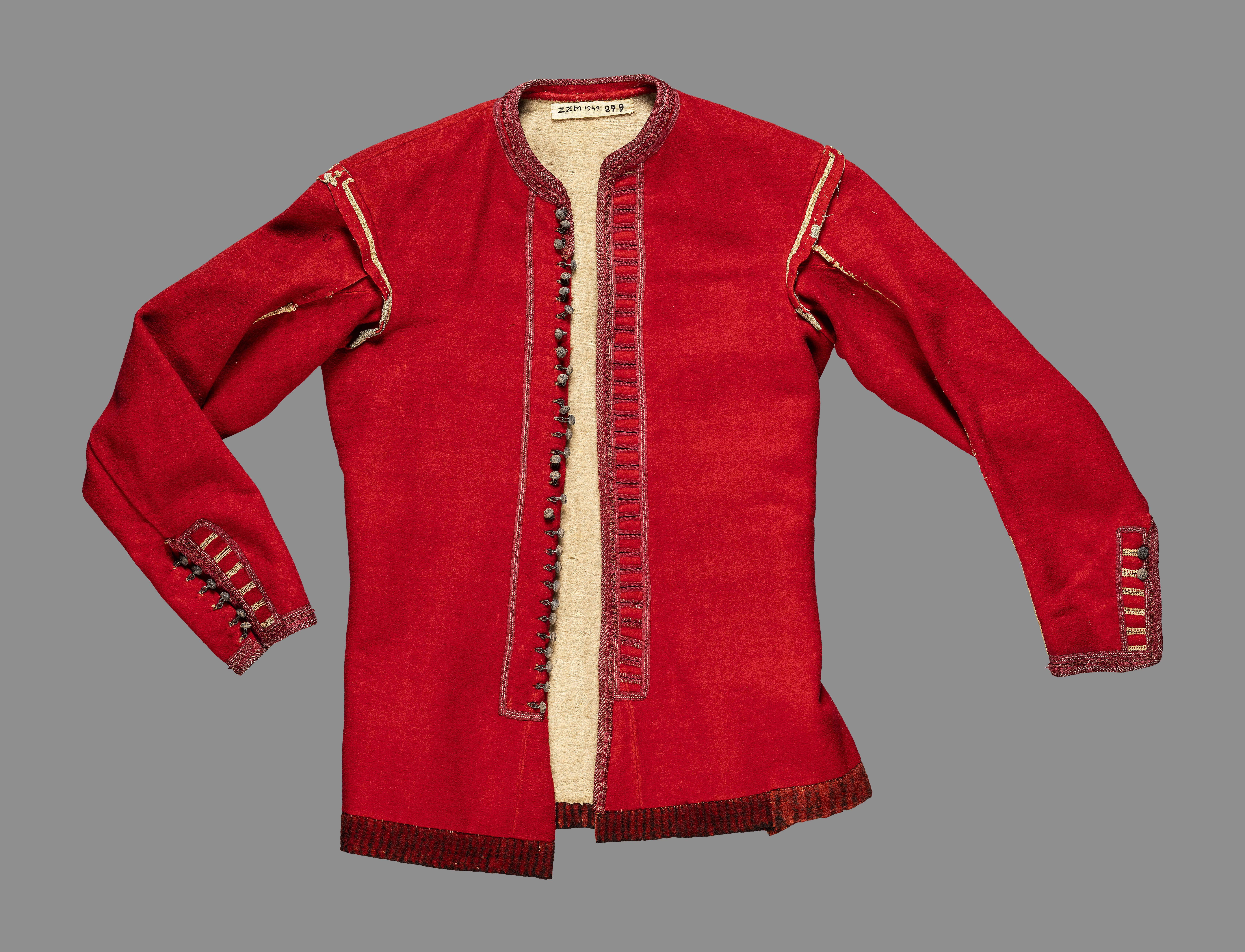 Blauw wollen hemd gedragen door de bruidegom, Marken