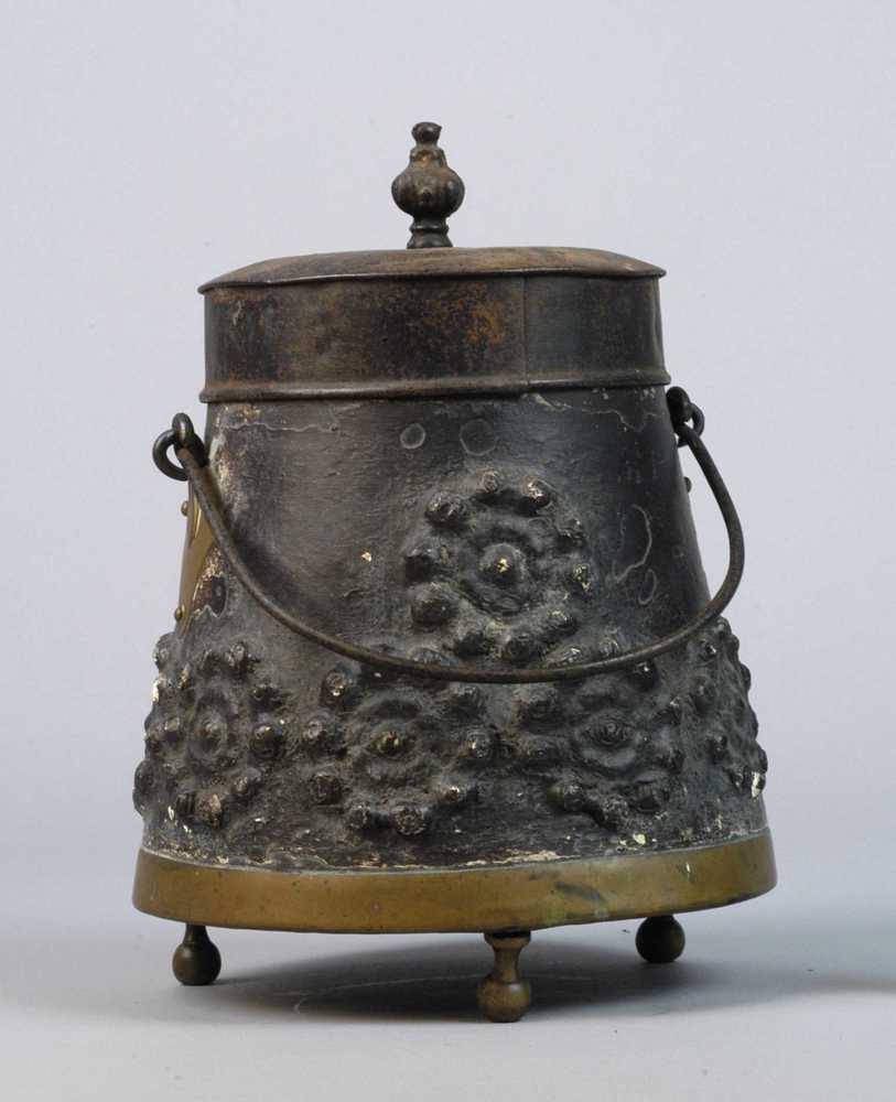 koperen doofpot met deksel en hengselen 3 pootjes, 1...