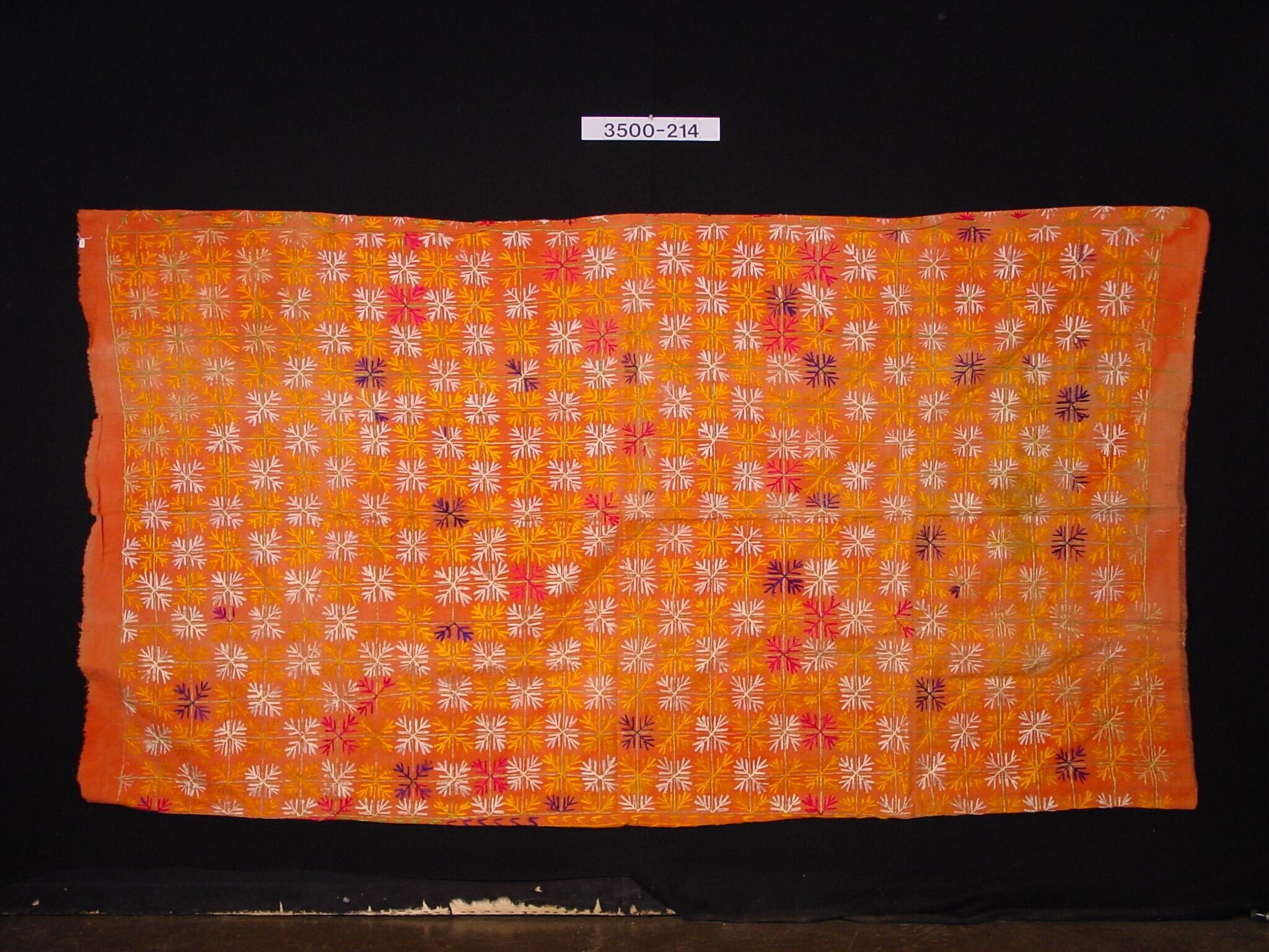 Katoenen weefsel, vermoedelijk een deken, versierd m...