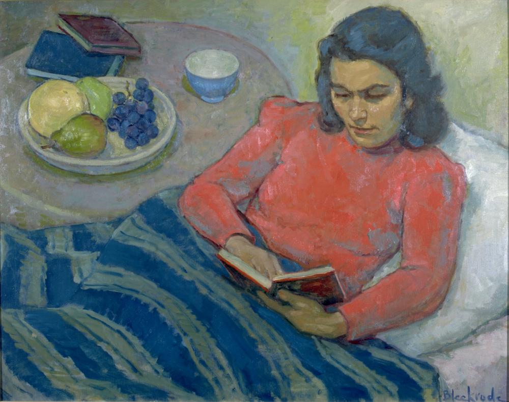 Els Bleekrode lezend in bed