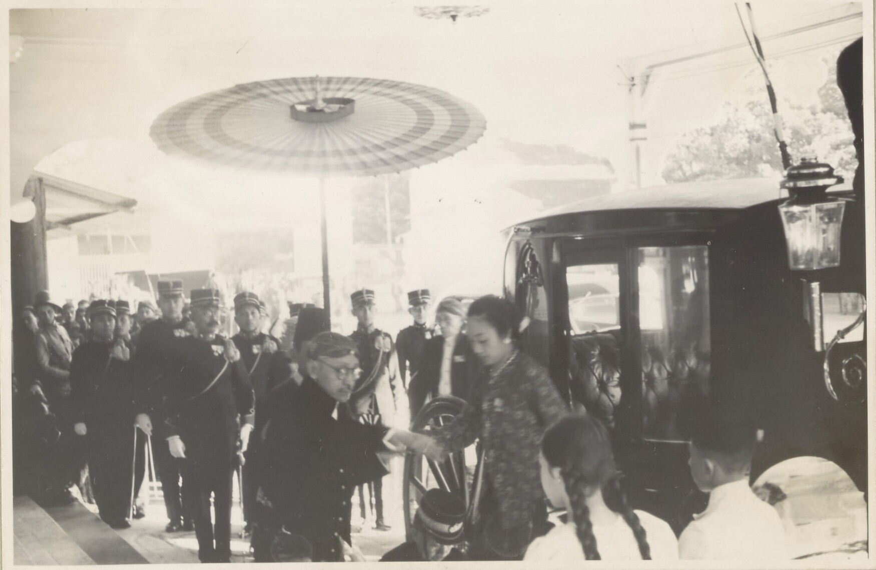 Begrafenis v. P.B. X (nog in de Kraton). Voor loopt ...