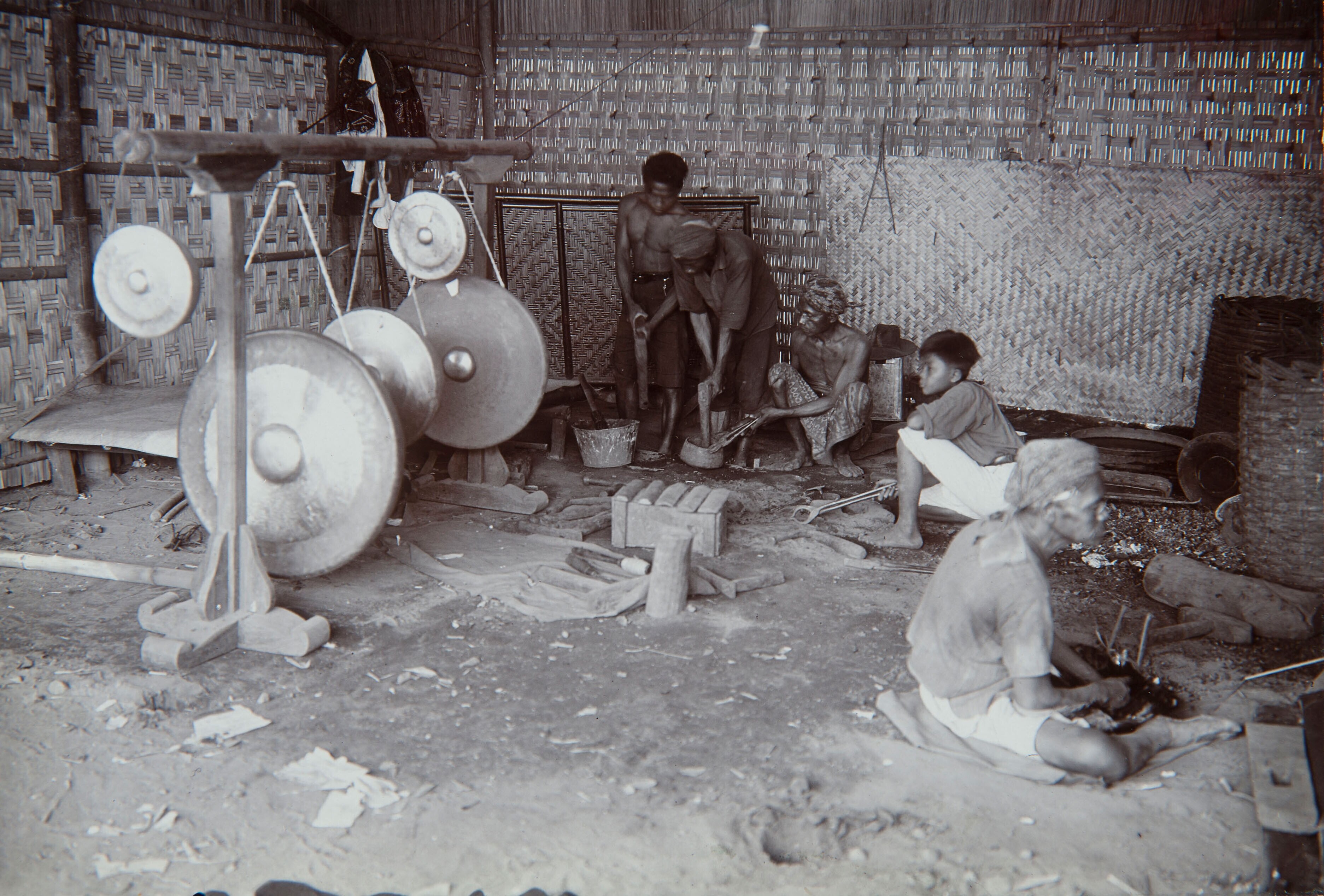 Vervaardiging van gamelaninstrumenten op de eerste n...
