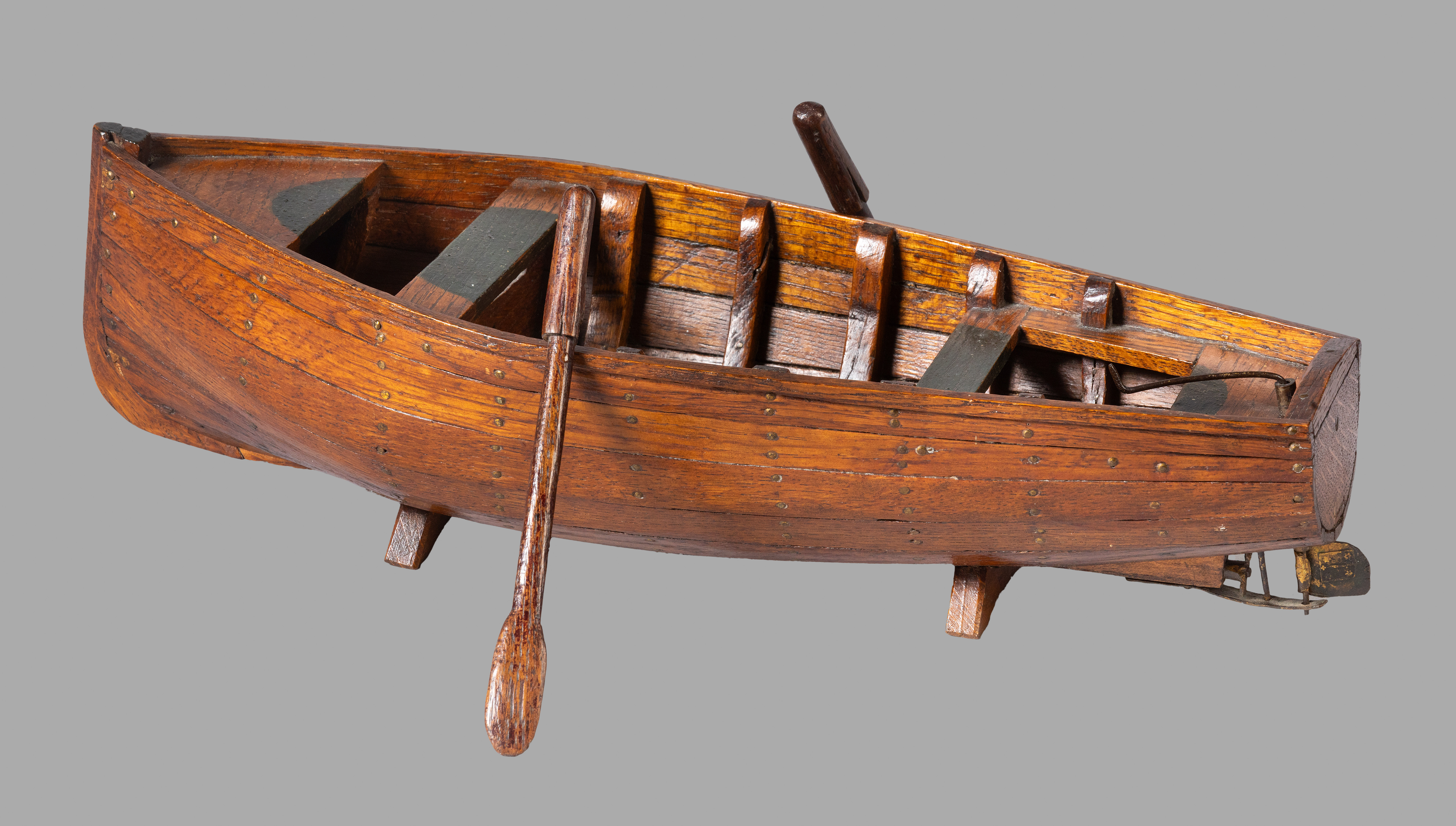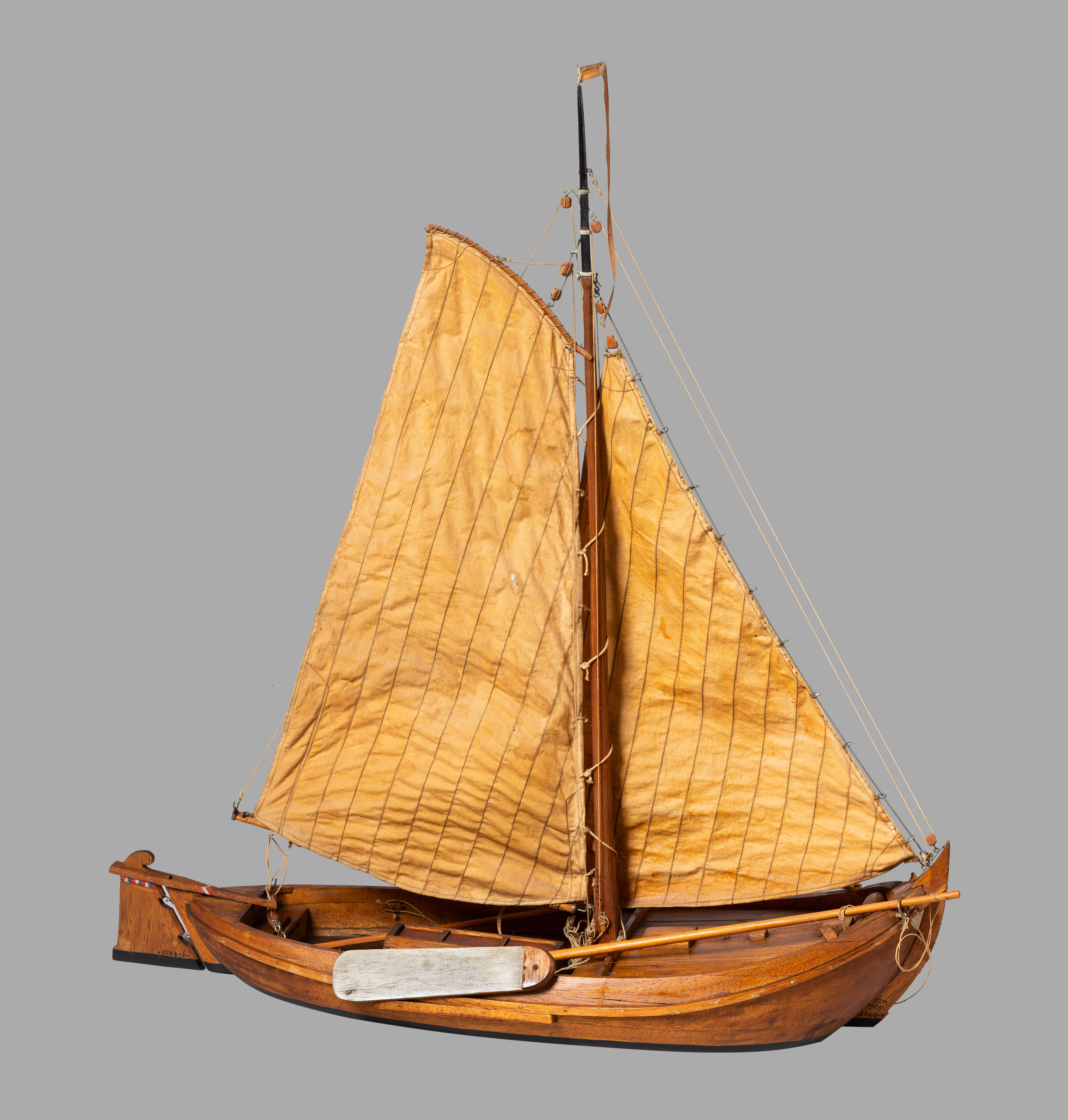 Model van een sloep, met riemen en schroef, karveel ...