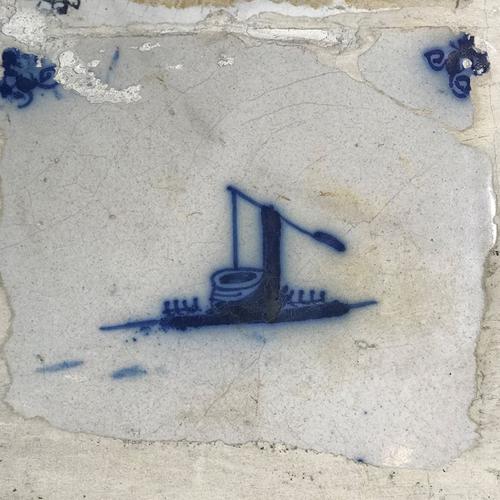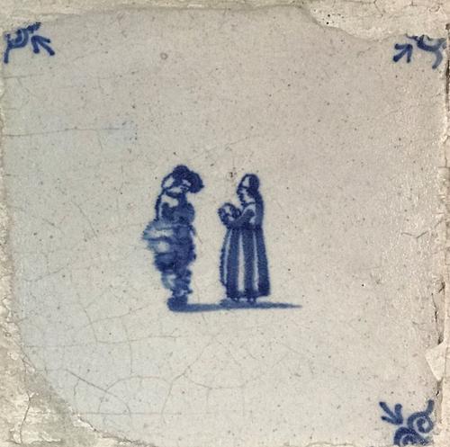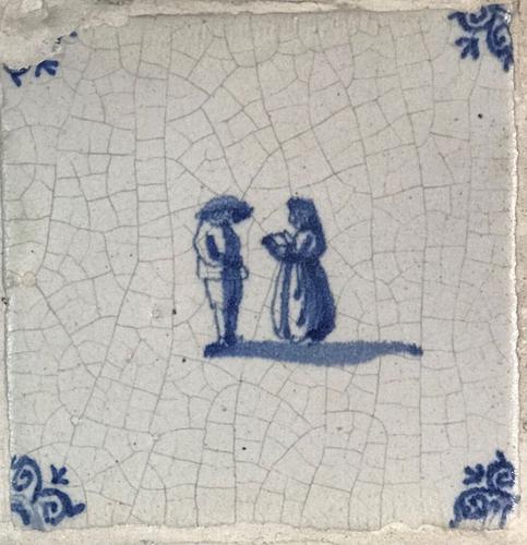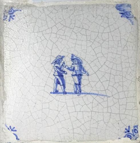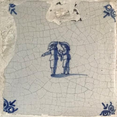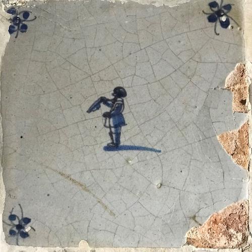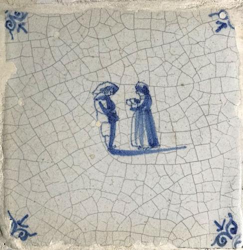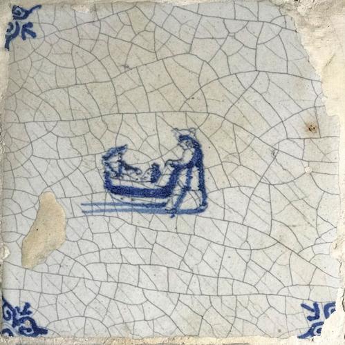 Tegel van aardewerk met tinglazuur voorstellende ? -...