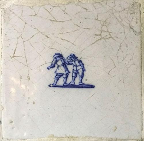 Tegel van aardewerk met tinglazuur voorstellende Pol...