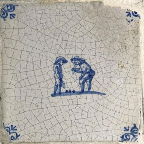 Tegel van aardewerk met tinglazuur voorstellende bal...