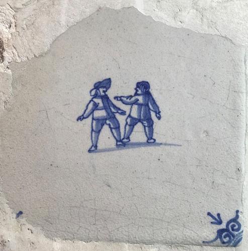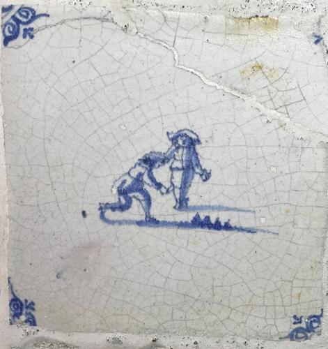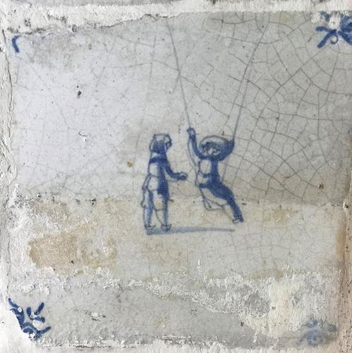 Tegel van aardewerk met tinglazuur voorstellende kin...