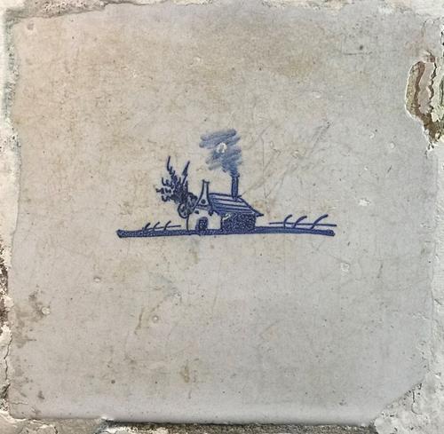 Tegel van aardewerk met tinglazuur voorstellende lan...