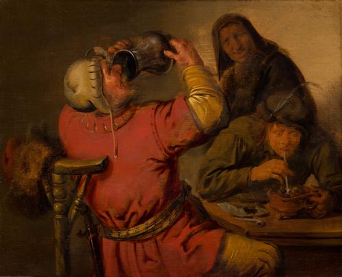 Een oude vrouw die een aderlating uitvoert bij een j...