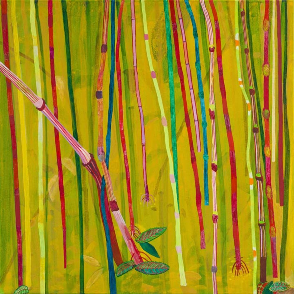 Meisje met geel hemdje met afbeelding van blonde vrouw