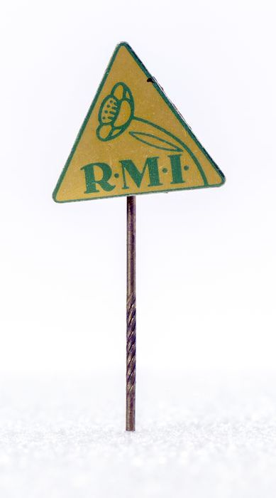Geel speldje "RMI" (Rotterdamsche Melkinrichting)