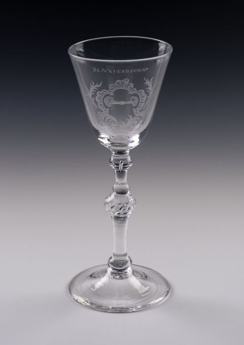 Kelkglas, gegraveerd met twee ineengeslagen handen e...