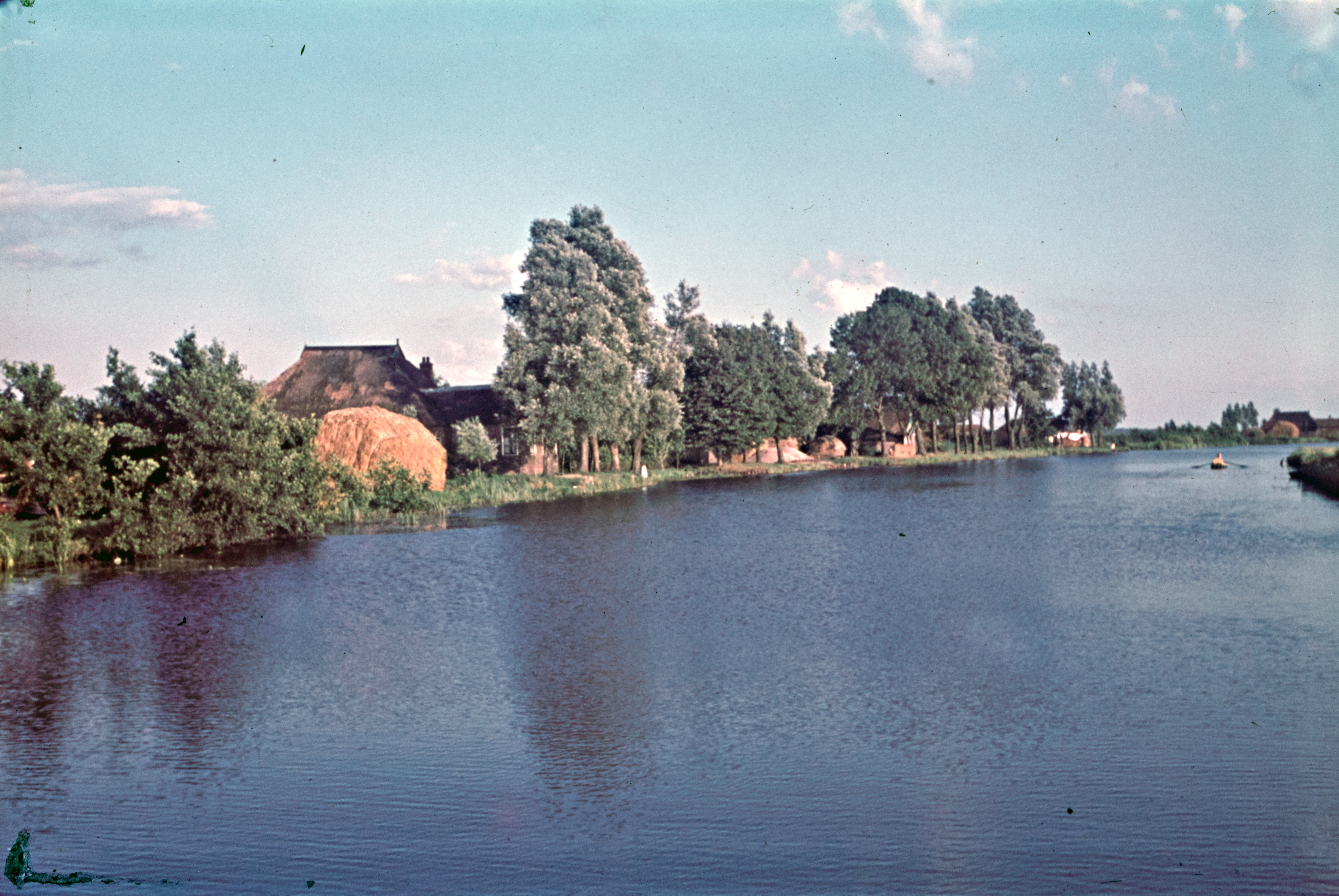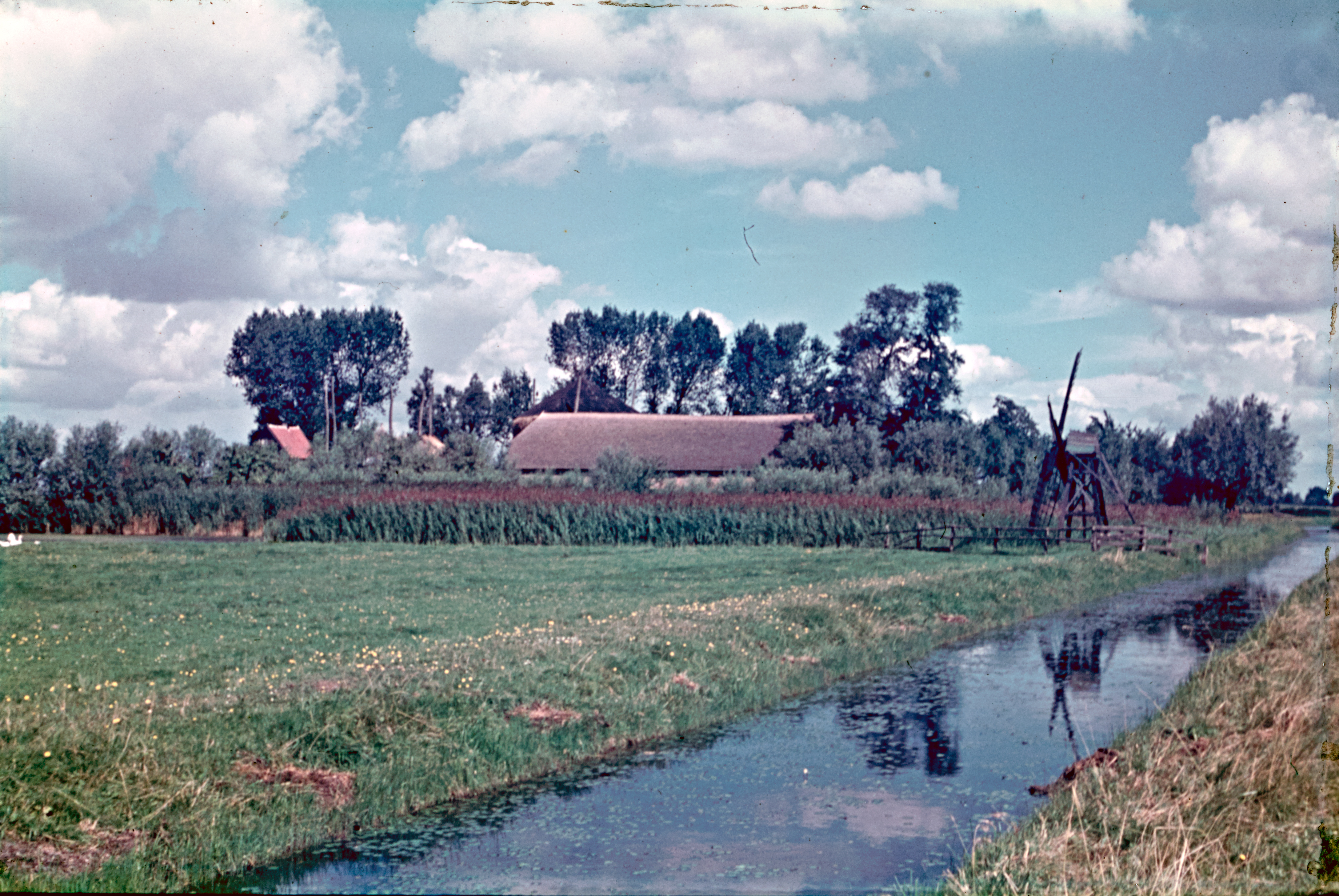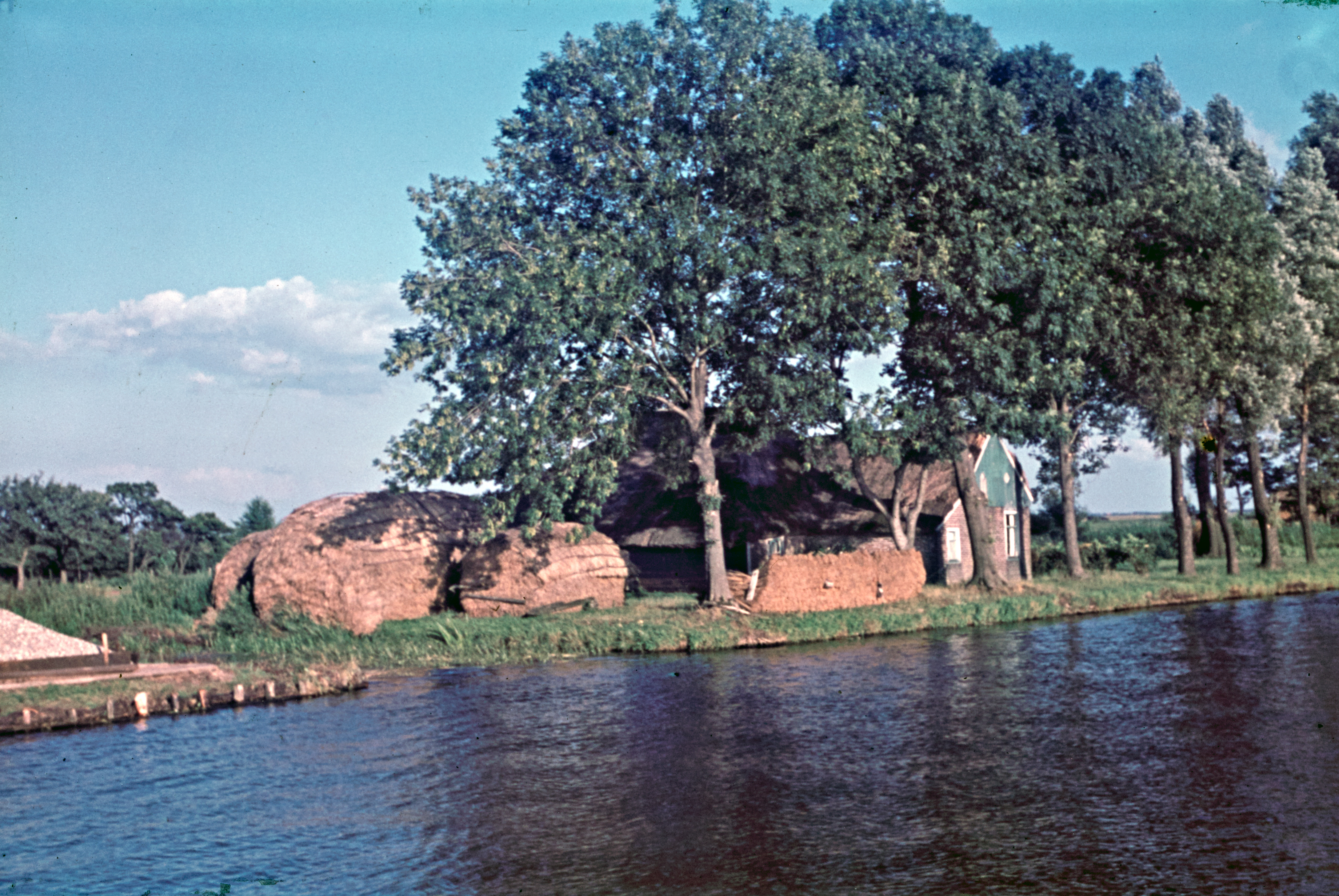 Rietopslag en boerderij aan breed water
