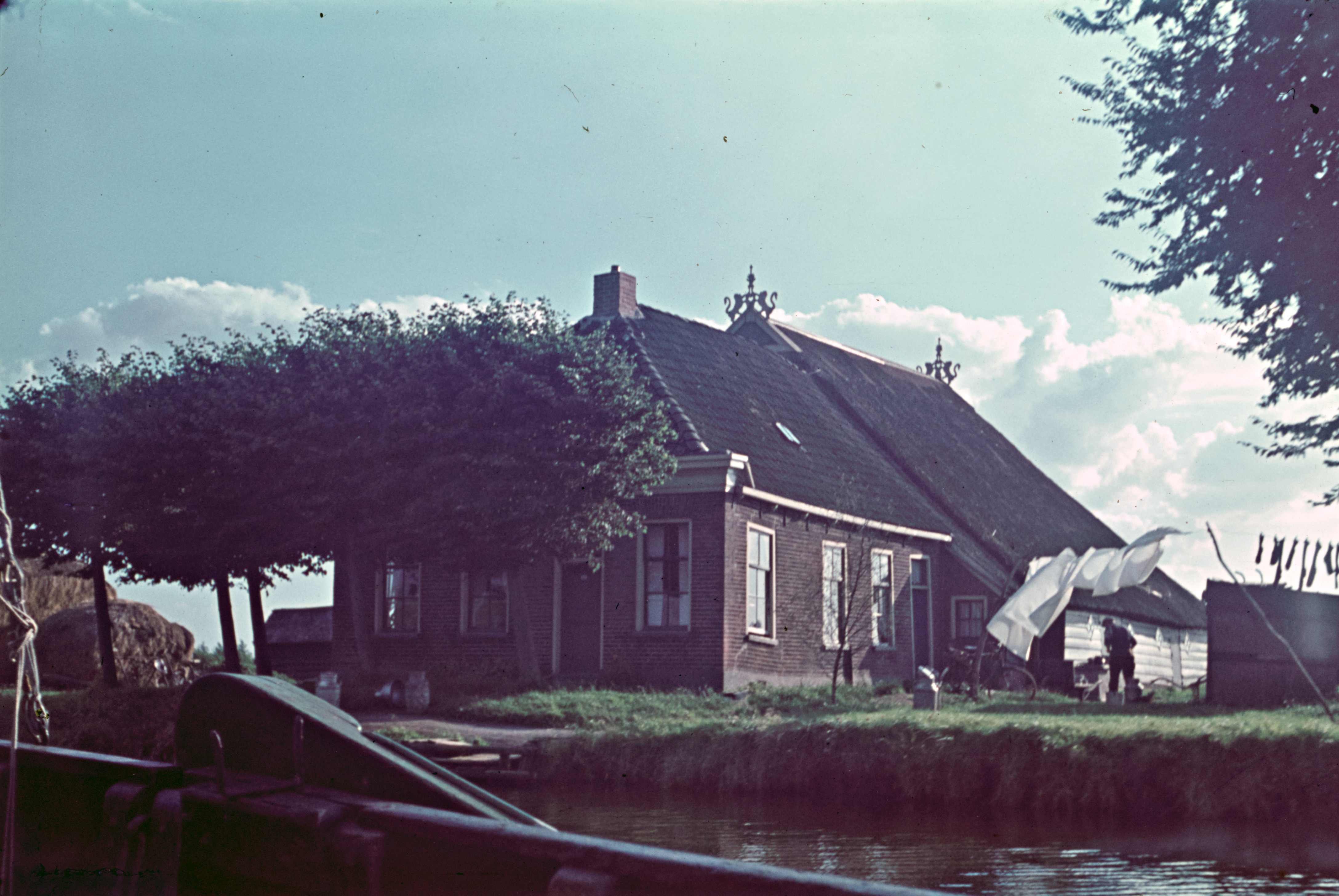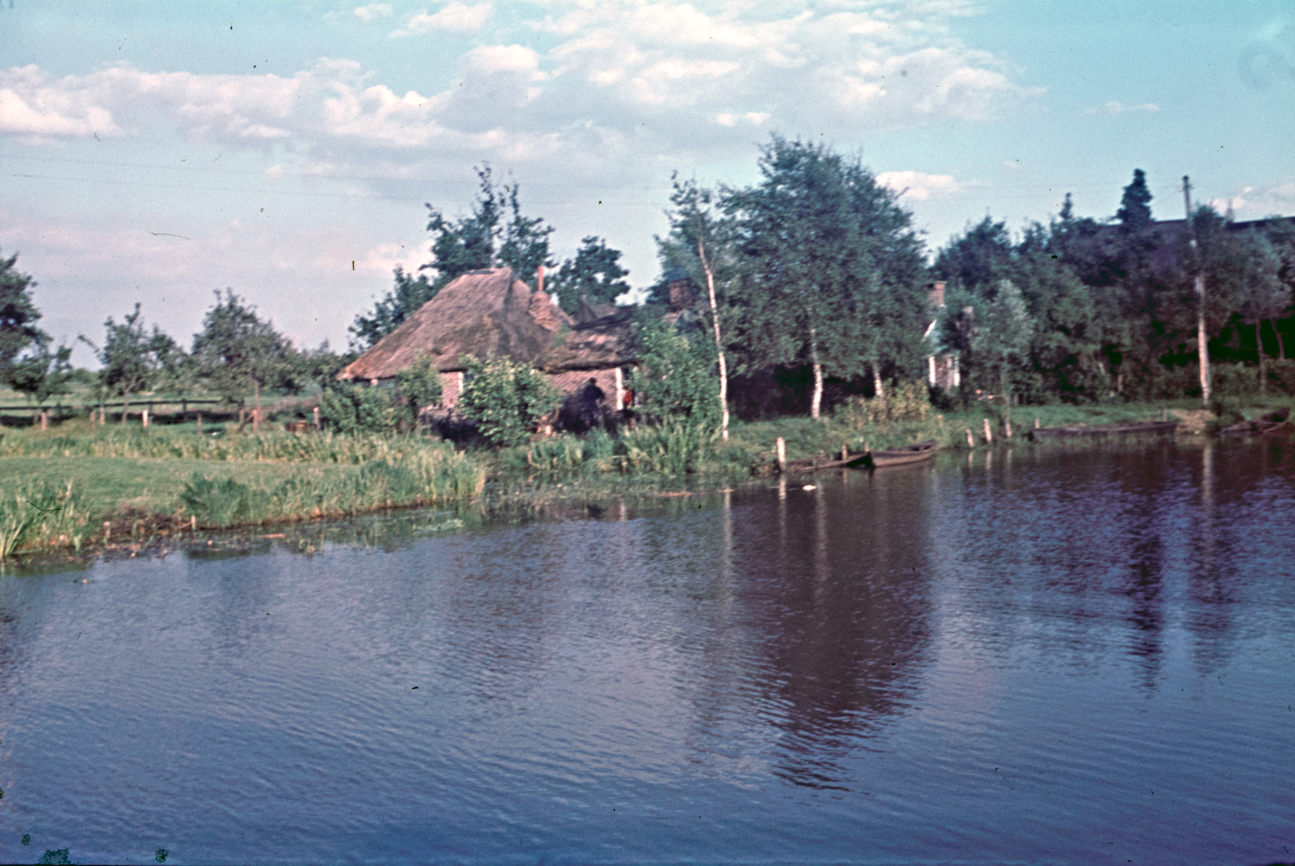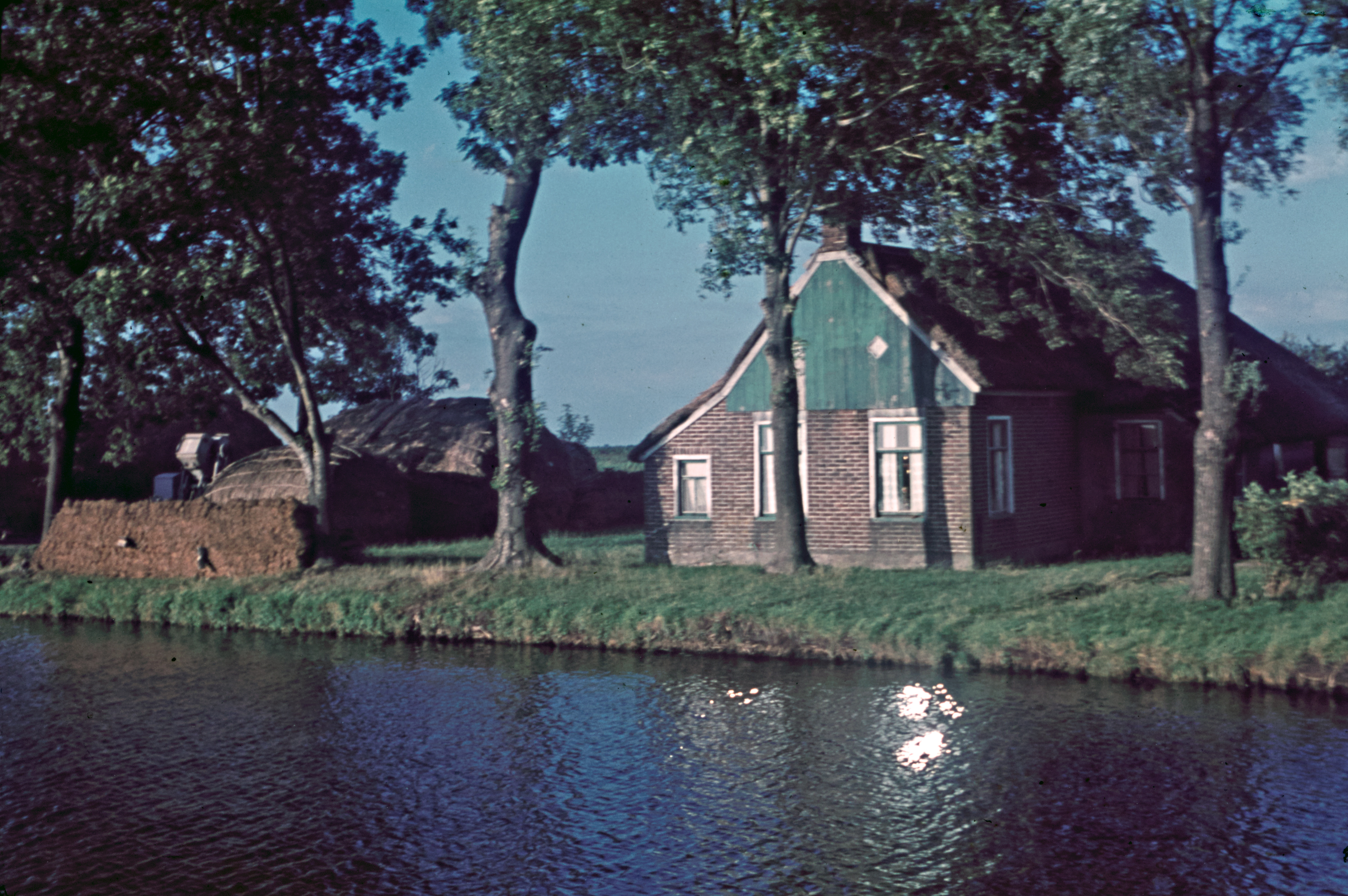 Rietopslag en boerderij aan breed water