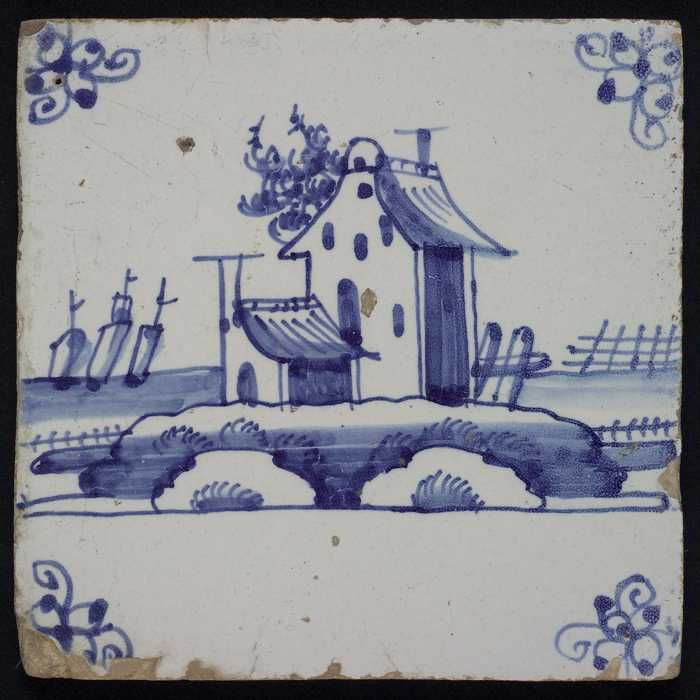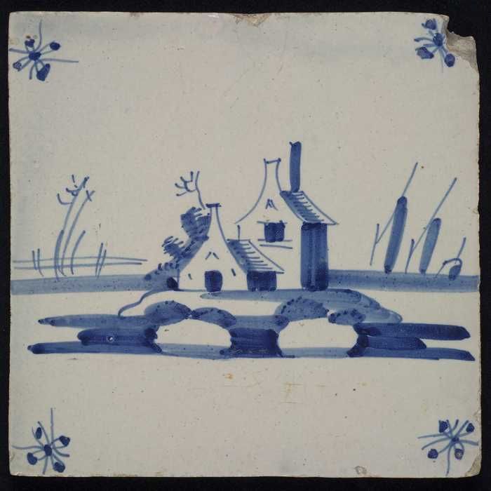 Tafereeltegel, blauw, huis, hoekmotief spin