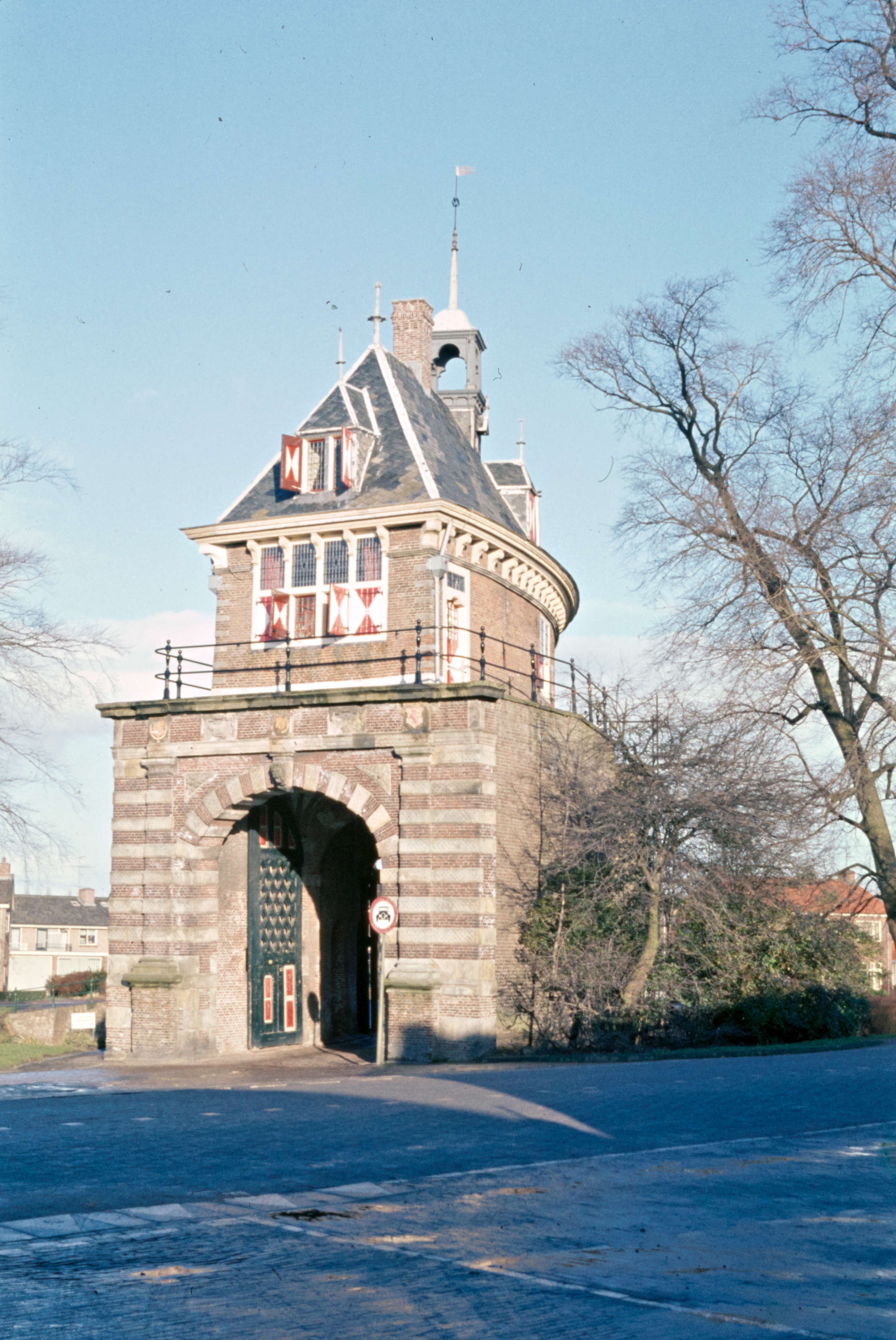 Sluishuis en klokkentorentje gezien van onder de oph...